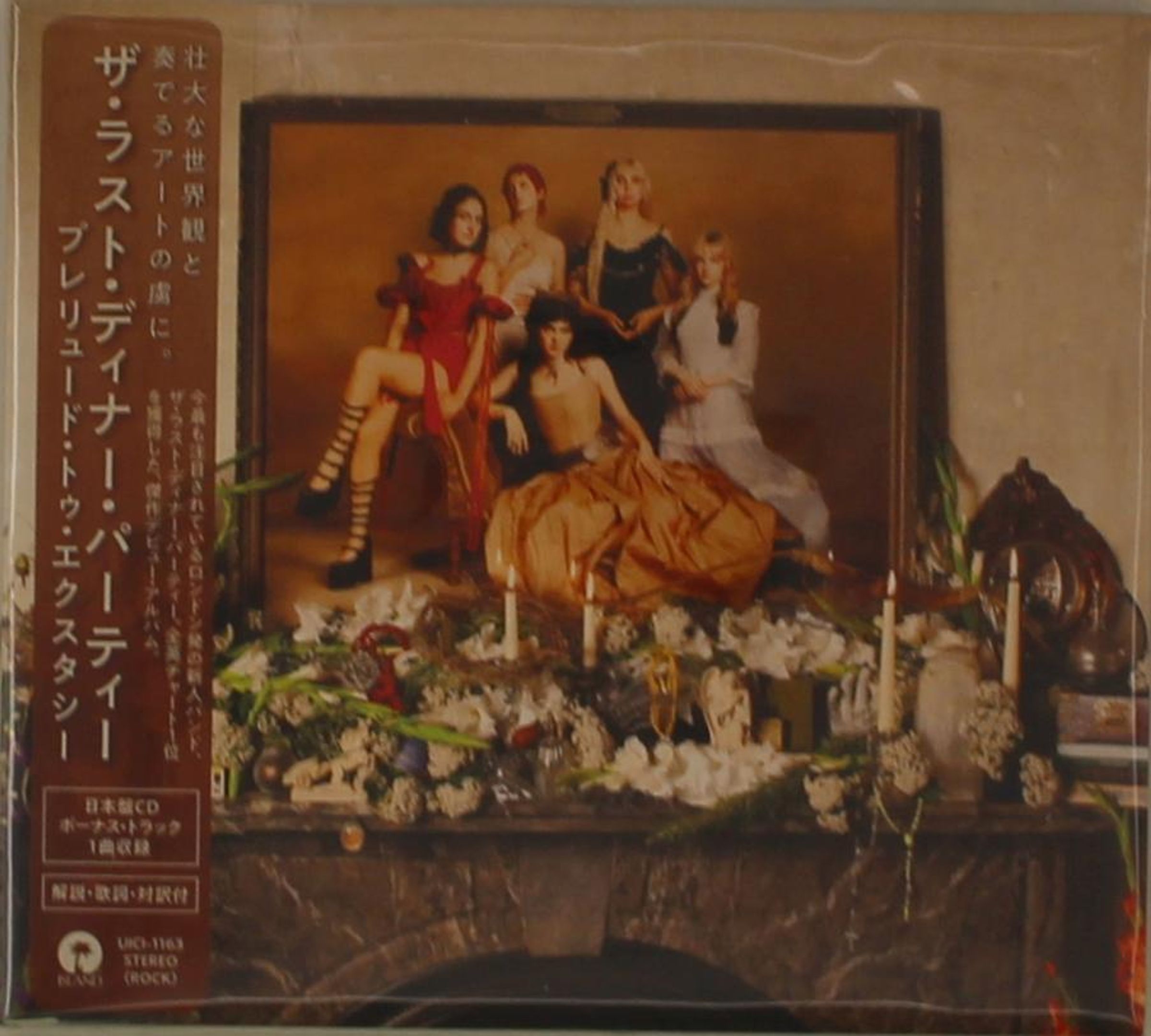 Japanischer Text auf der linken Seite. Im Hintergrund ein Gemälde mit fünf stilvoll gekleideten Personen. Vorne Kerzen und Blumen., CD