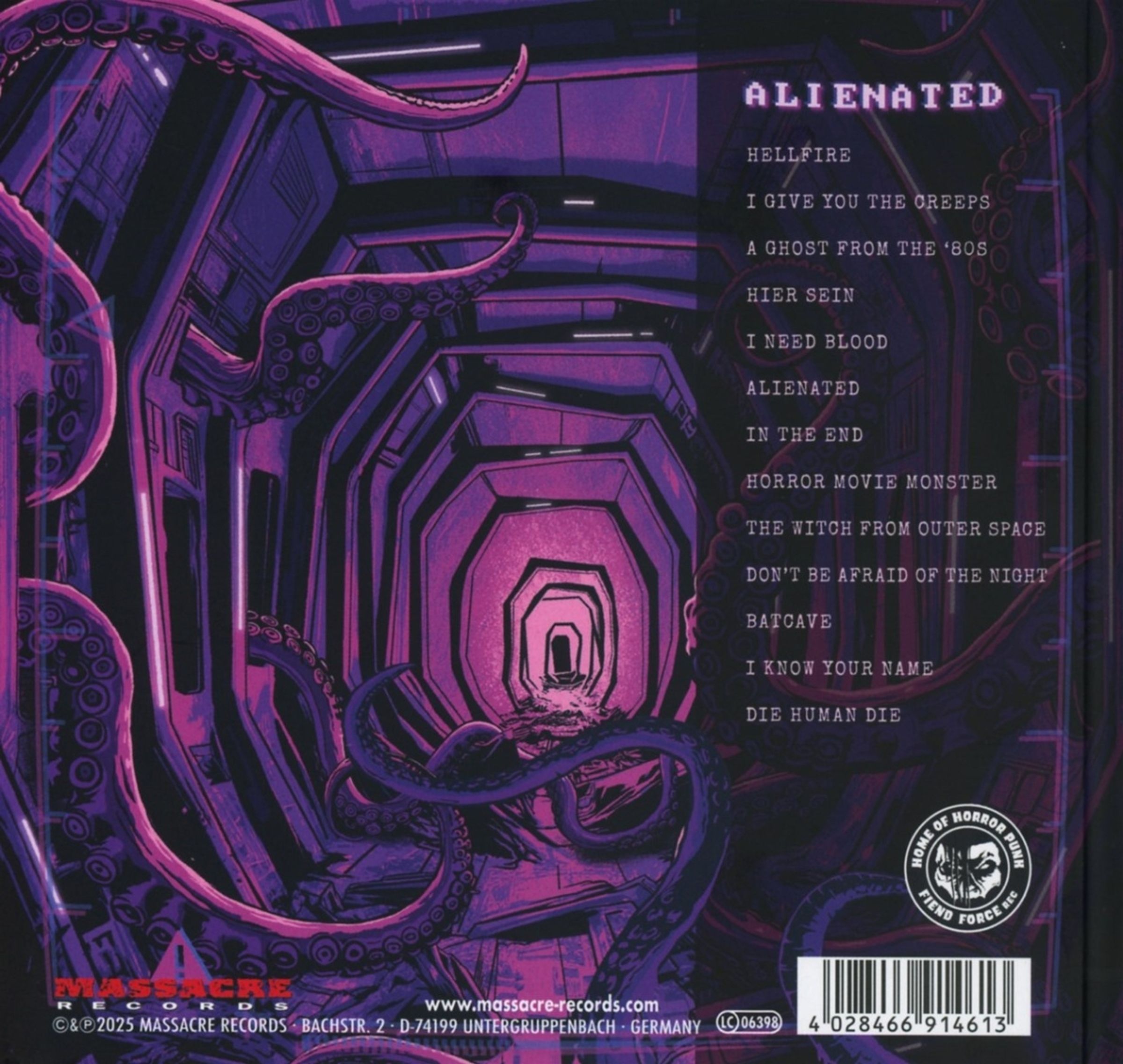Nach Erfolgen wie »Haunted« (2020) und der Rückkehr zum eigenen Label Fiend Force entstand ein fokussiertes, kraftvolles Album voller Spaß beim Songwriting. Produzent Tim Schulte brachte frische Akzente, während Arne Neurand den Mix perfektionierte. Songs wie »I Give You the Creeps« oder »Hier Sein« greifen Themen von Entfremdung auf. Rod Ushers tiefe, eindringliche Stimme macht Alienated womöglich zum bisher dunkelsten Album der Band – direkt, emotional und mit Herzblut.