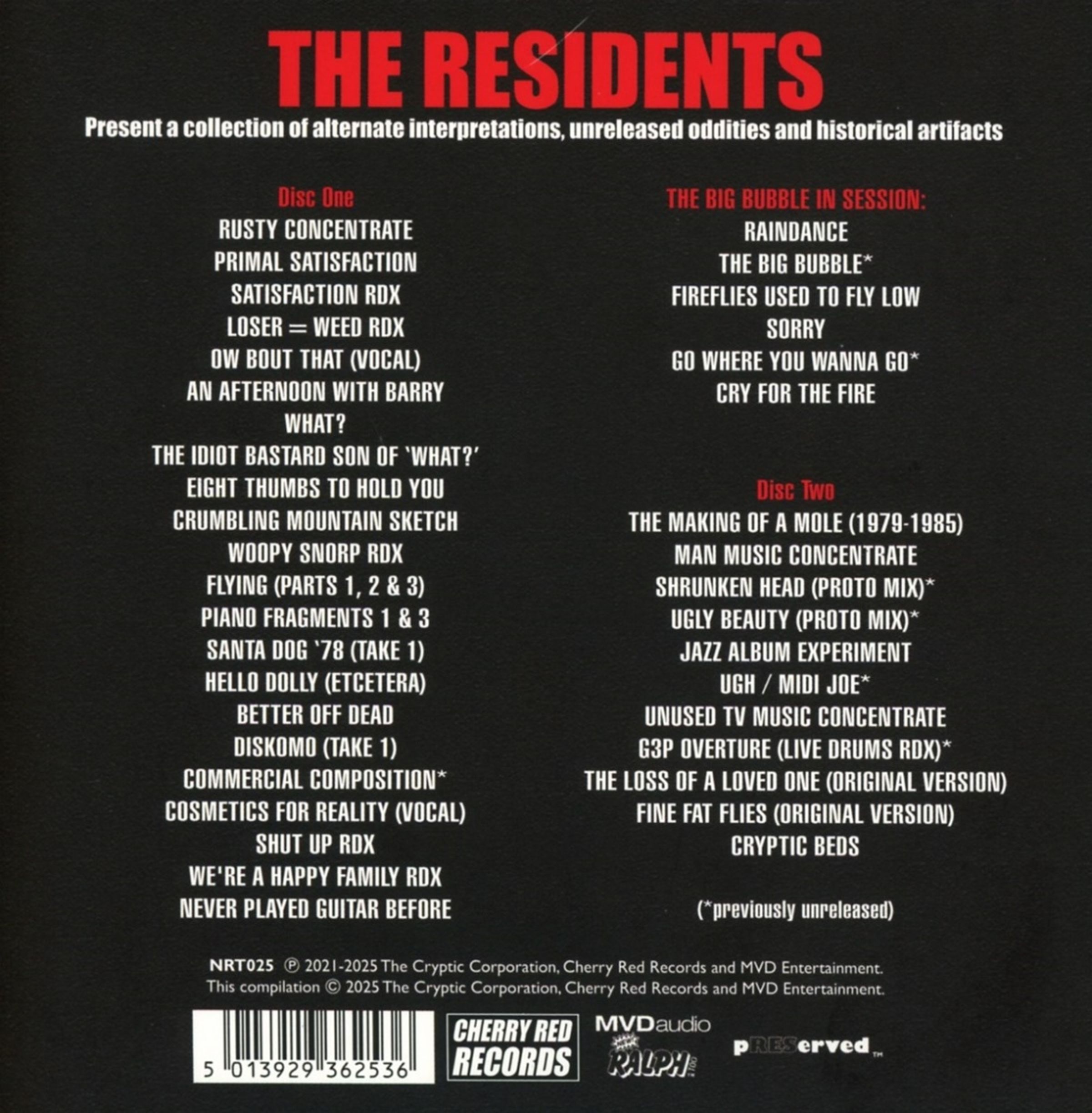 The Residents beschreiten nun schon seit über einem halben Jahrhundert einen einzigartigen Weg durch die Musiklandschaft. Die 39 hier enthaltenen Tracks stammen aus der »klassischen« Phase der Band - die »verlorene« Musik des Albums »Man«, Outtakes aus der »Mole«- Trilogie, alternative Versionen von Tracks aus »God In 3 Persons« und sogar Zeugnisse einer kurzen »Jazz-Phase«. Von den Originalbändern der Band neu gemastert, sowie von verschollen geglaubten Bändern, die in einem Lagerhaus 2023 wiederentdeckt wurden.