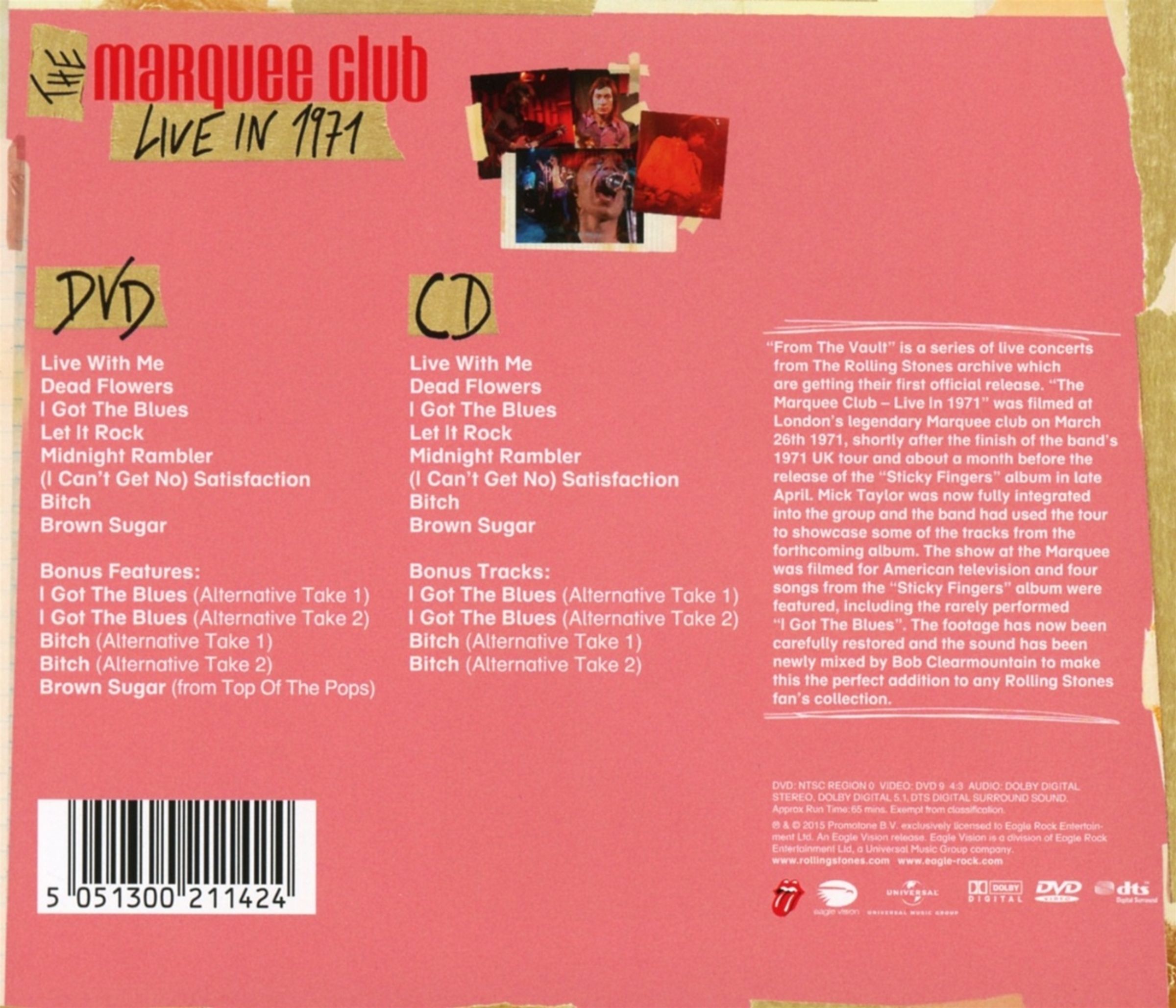 Der Marquee Club in London war über seinen legendären Ruf hinaus für die Rolling Stones schon immer ein besonderer Ort. 1962 hatten Jagger & Co ihren ersten Auftritt als The Rolling Stones im Marquee Club, der damals allerdings noch in der Oxford Street ansässig war. Ein weiterer Bonustrack zeigt die Rolling Stones bei einem Auftritt bei Top Of The Pops, ausgestrahlt im April 1971, mit »Brown Sugar«.