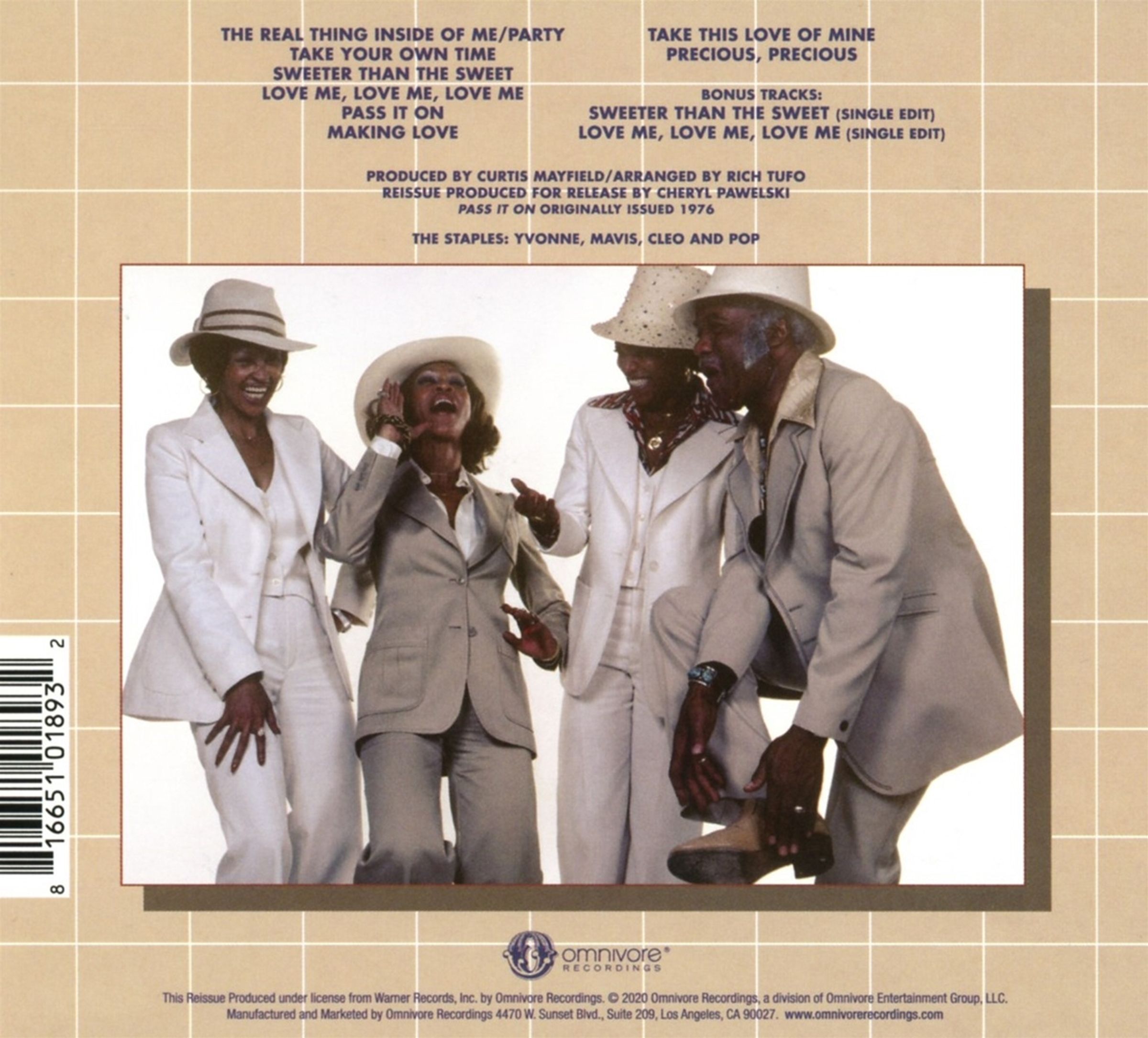 Omnivore ist stolz darauf, das von Curtis Mayfield 1976 produzierte Album »Pass It On« in der neu gemasterten Neuaufauflage zu präsentieren. Die neue Ausgabe enthält Liner Notes vom Grammy®-prämierten Autor Rob Bowman und alle Single Edits als Bonustracks. Diese Neuauflage wird von den Grammy®-Preisträgern Cheryl Pawelski und Michael Graves produziert und neu gemastert.