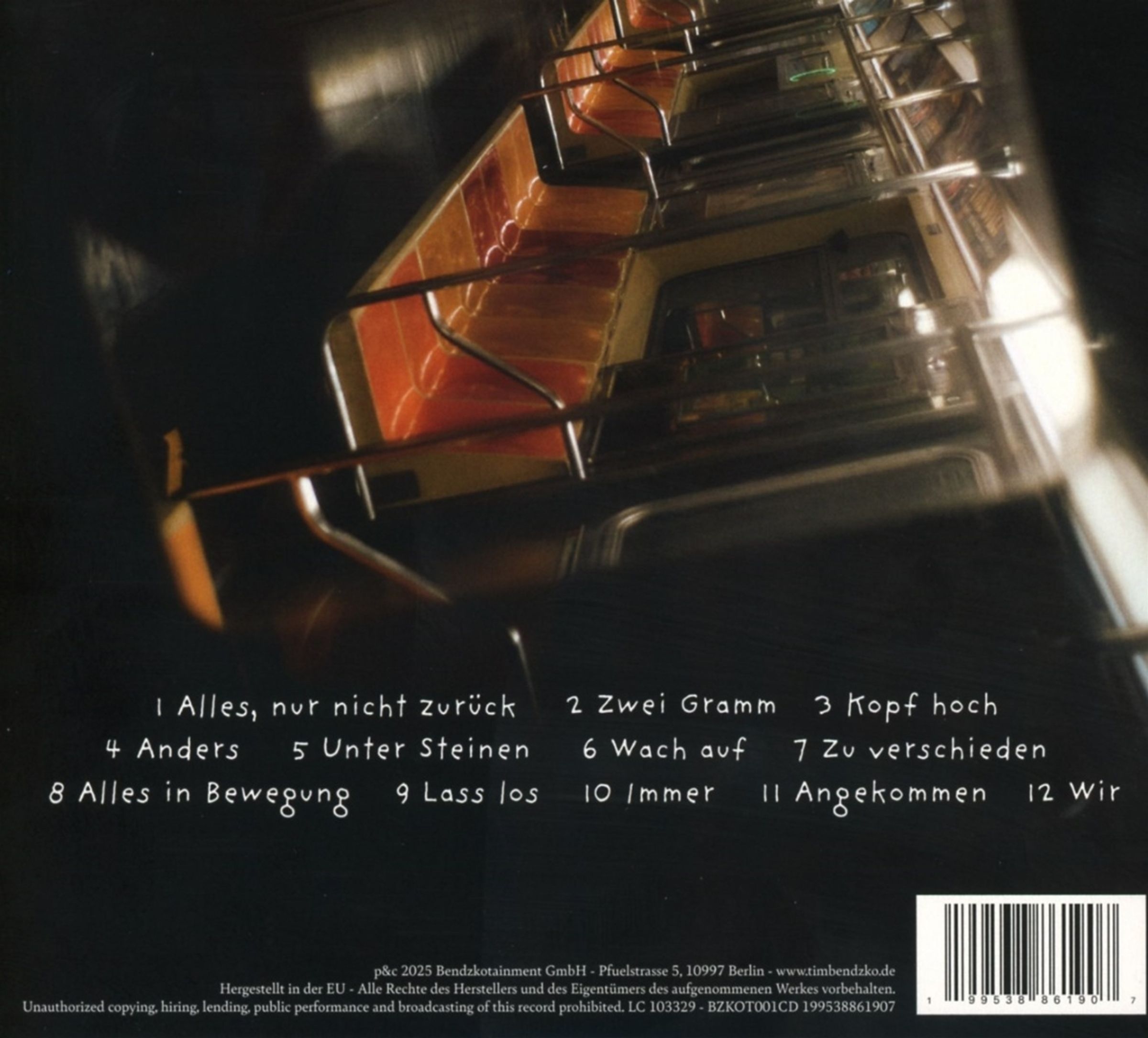 Tim Bendzko veröffentlicht im Januar 2026 sein neues Album »Alles, nur nicht zurück«, das seine künstlerische Neuausrichtung markiert. Die zwölf Songs sind persönlich, ungeschönt und thematisieren Aufbruch, Neuanfang und das Loslassen. Musikalisch setzt er auf ein innovatives Zusammenspiel von Elektronik und natürlichen Instrumenten.