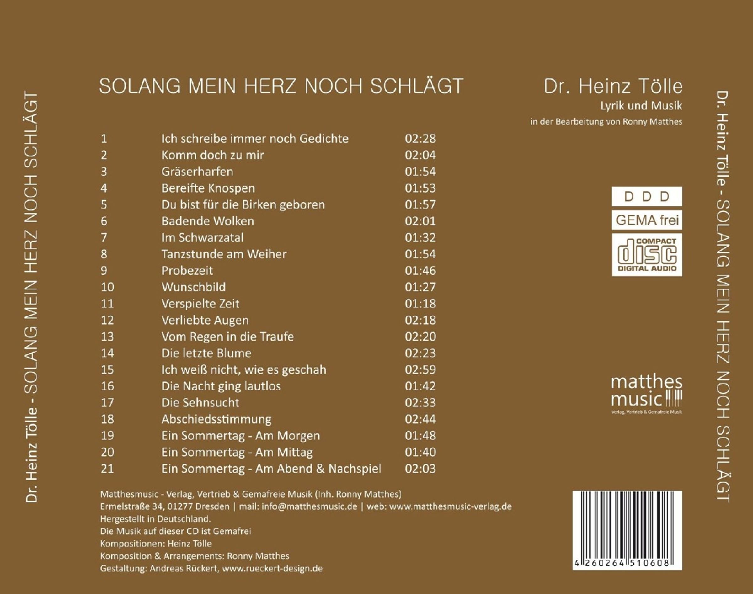 Dr. Heinz Tölle & Ronny Matthes: Solang mein Herz noch schlägt (von Heinz Tölle) auf CD