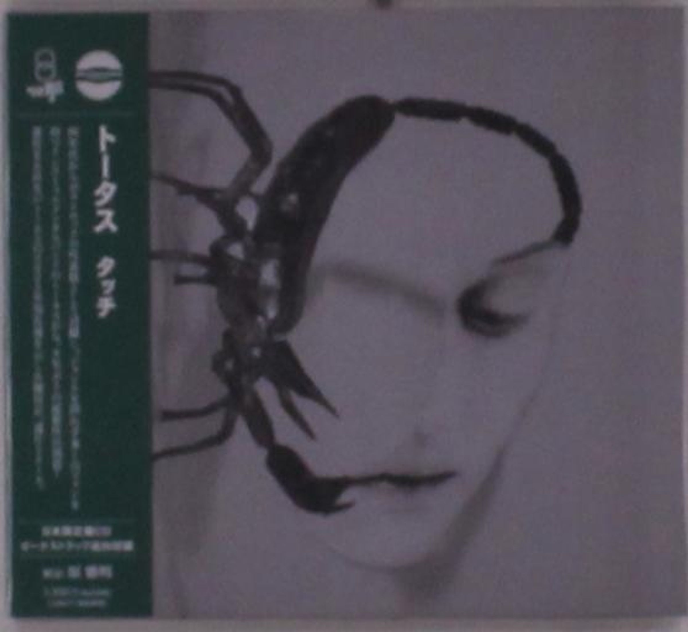 Japanische Schriftzeichen und englischer Text links. Ein Gesicht mit einer großen schwarzen, skorpionartigen Zeichnung rechts., CD