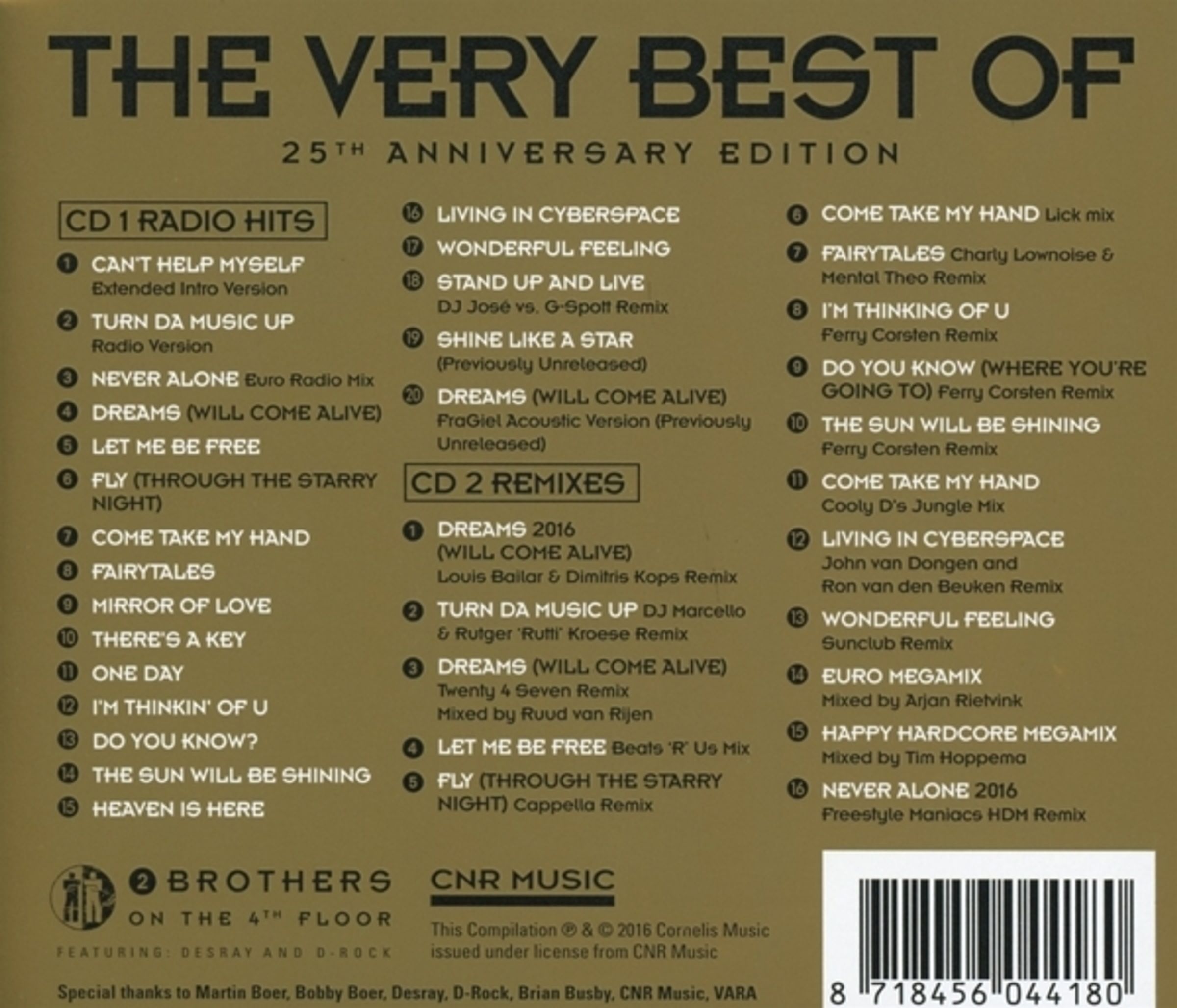 Die niederländische Eurodance-Gruppe 2 Brothers On The 4th Floor wurde 1990 gegründet, als die beiden Brüder Bobby und Martin Boer in einem kleinen Schlafzimmer in der elterlichen Wohnung im vierten Stock mit Musik zu experimentieren begannen. Zusammen mit dem Rapper Da Smooth Baron MC und der Sängerin Peggy »The Duchess« veröffentlichten sie noch im selben Jahr ihre erste Single »Can't Help Myself«, die 1991 zu einem internationalen Hit wurde. Danach war es eine Weile ruhig, aber 1993 waren die Brüder wieder da und lieferten in den folgenden Jahren mehrere internationale Hits: »Never Alone« mit D-Rock (René Philips) und Des'Ray (Desirée Manders), »Dreams« und »Let Me Be Free«.