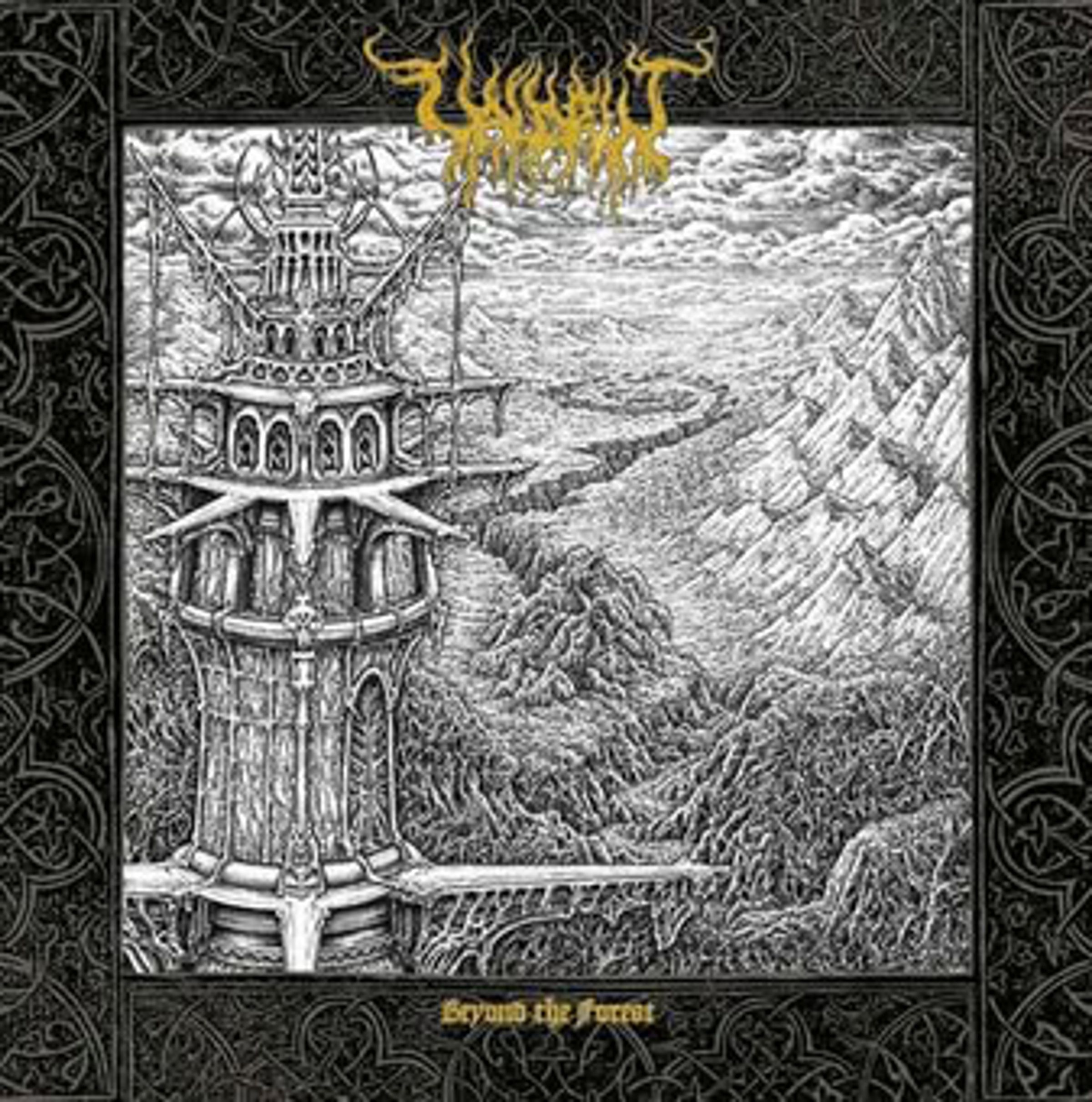 "Urzeit" oben, "Beyond the Forest" unten. Eine detaillierte schwarz-weiße Illustration eines Turms in einer bewaldeten Landschaft., 2 LPs
