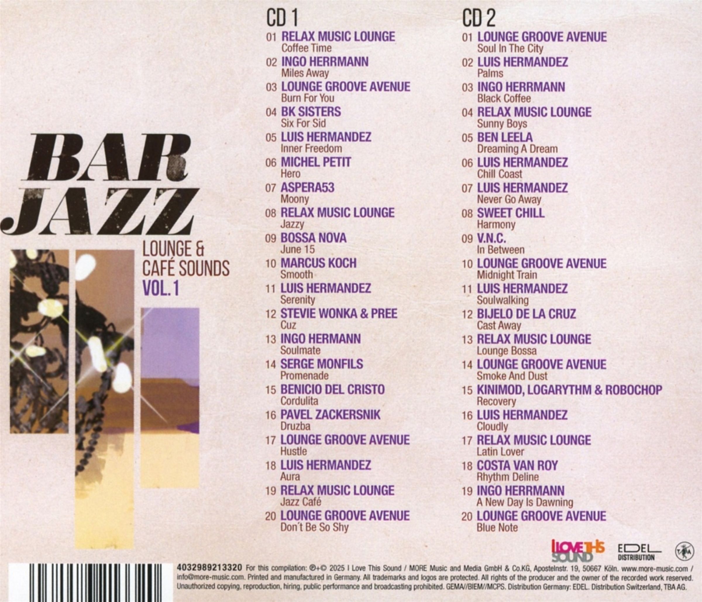 Die sorgfältig ausgesuchten Sounds kreieren eine relaxte Atmosphäre, ohne aufdringlich oder einschläfernd zu sein. »Bar Jazz-Lounge & Café Sounds Vol. 1« bringt mit smoothen Melodien, groovigen Rhythmen und einer Prise Eleganz das Flair einer klassischen Jazz-Bar direkt zu dir nach Hause.