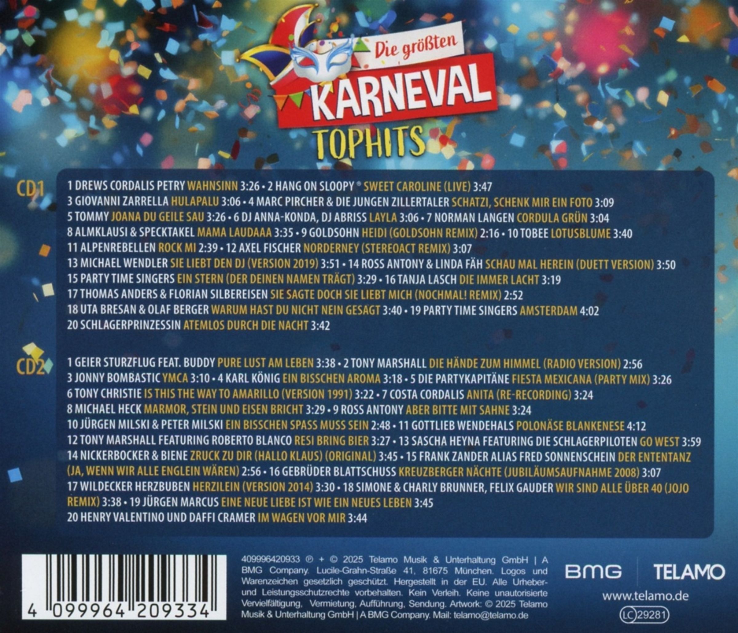 Die größten Karneval Tophits auf 2 CDs