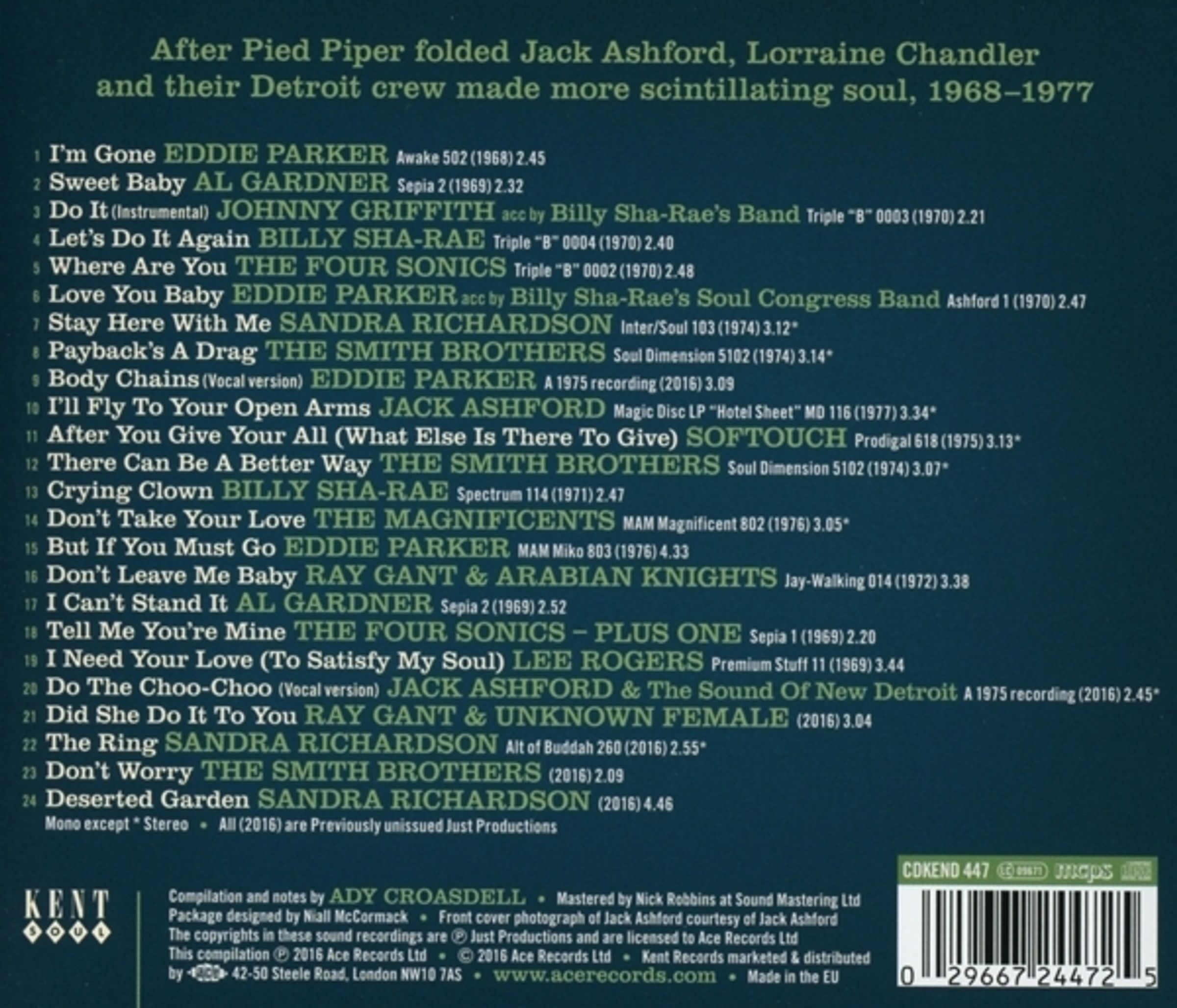 Querschnitt aus der 2016 veröffentlichten Kent-CD mit 14 ausgesuchten und von Jack Ashford produzierten Soul-Tracks auf tiefschwarzem Vinyl!