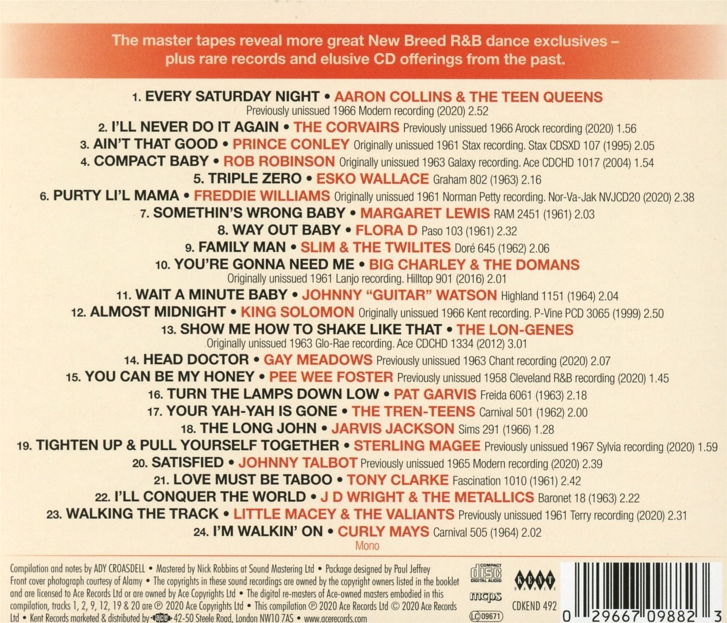 24 Track-Sampler mit ausgesuchten R&B-Tracks aus den Kent-Archiven. Diverse bislang unveröffentlichte Tracks und ausführliche Liner Notes von Compiler Ady Croasdell runden das Package ab.