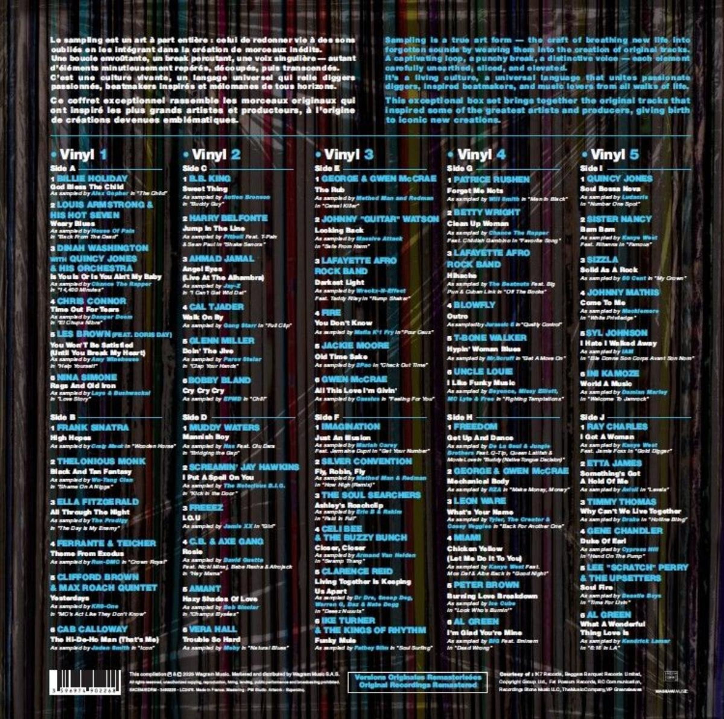 Sampler & Soul - The Originals Behind the Hits (5LP) Diese exklusive Compilation versammelt die Originalsongs, die später in großen Pop-, Hip-Hop- und R&B-Hits gesampelt wurden. Von Betty Wright über Quincy Jones bis zur Lafayette Afro Rock Band - hier sind die musikalischen Wurzeln moderner Urban-Sounds zu hören. Die 5LP-Box bietet eine stilvolle Reise durch Jazz, Funk, Soul und Blues mit Klassikern von Billie Holiday, Nina Simone, B. B. King, Screamin' Jay Hawkins, Ray Charles, Etta James