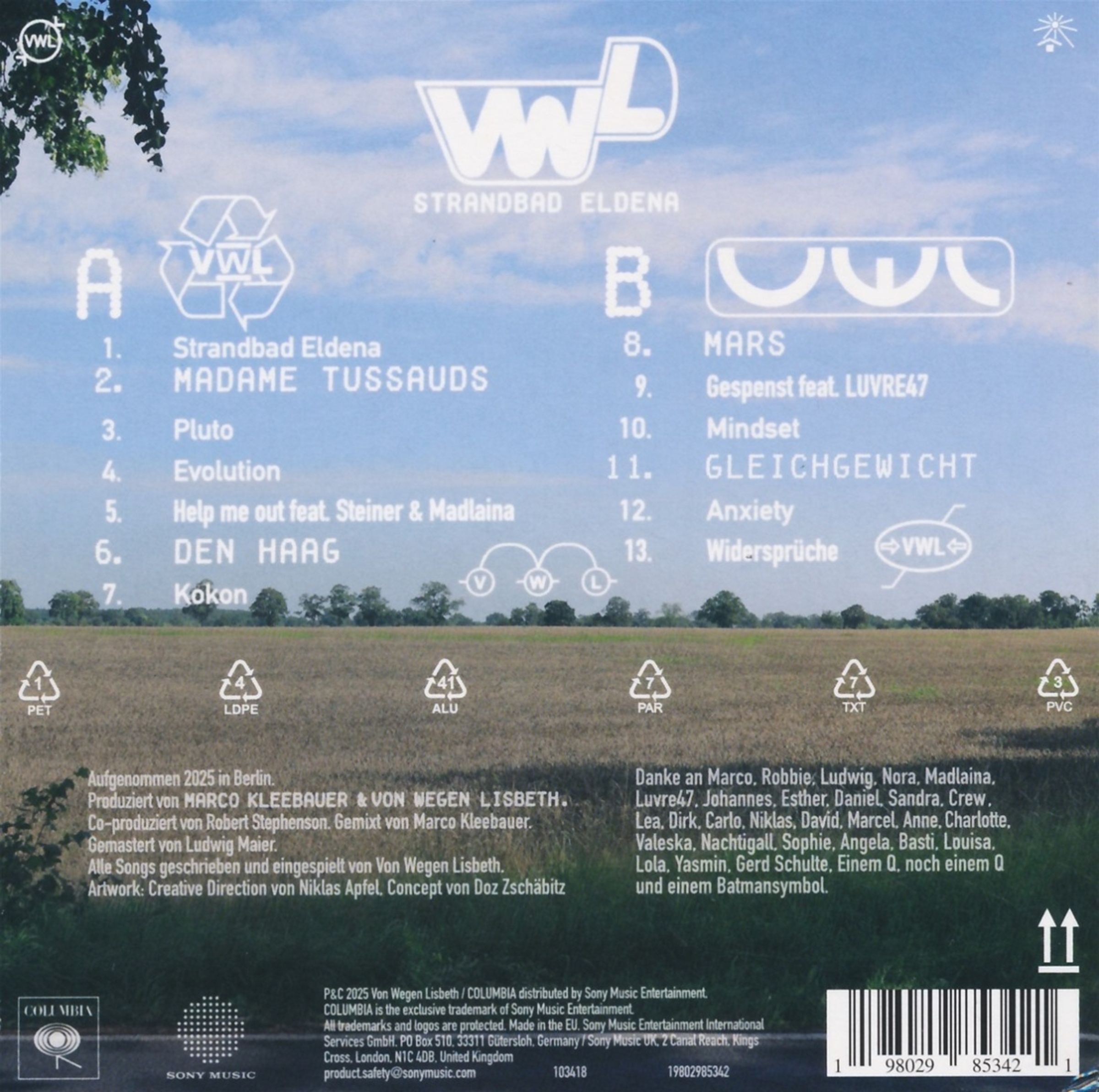 Mit »Strandbad Eldena« legen Von Wegen Lisbeth ihr viertes Studioalbum vor – eine Sammlung aus lakonischen Beobachtungen, nachdenklichen Momenten und dieser ganz eigenen Mischung aus Indie-Pop, die längst ihr Markenzeichen ist. Zwischen Alltagsabsurditäten und Fragen nach Halt in einer chaotischen Welt findet die Band einen Sound, der vertraut und doch neu wirkt. »Strandbad Eldena« umfasst 13 Tracks und ist auf Vinyl sowie CD erhältlich.