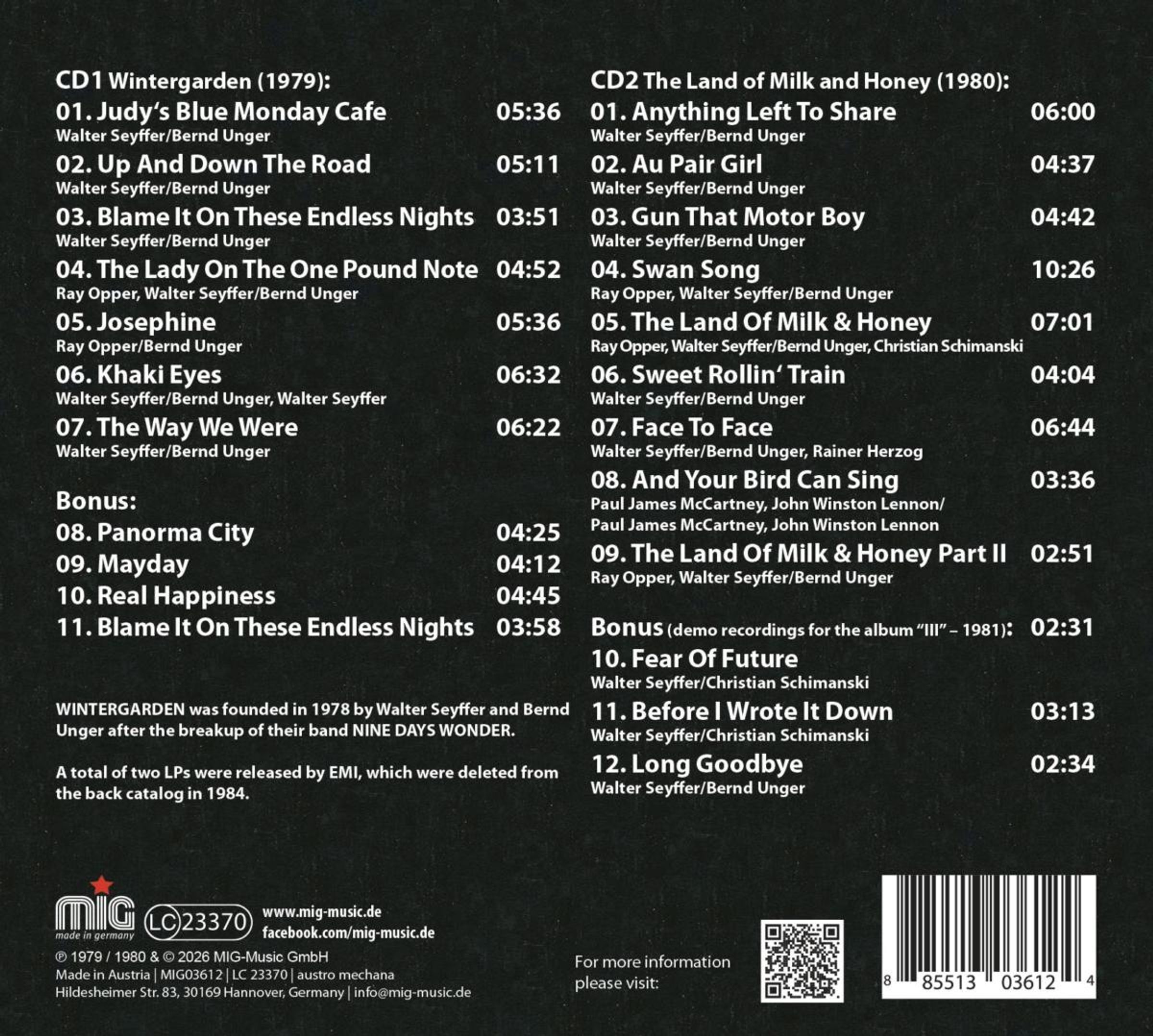 Wintergarten: Wintergarden & The Land Of Milk and Honey (Bonus Editio auf 2 CDs