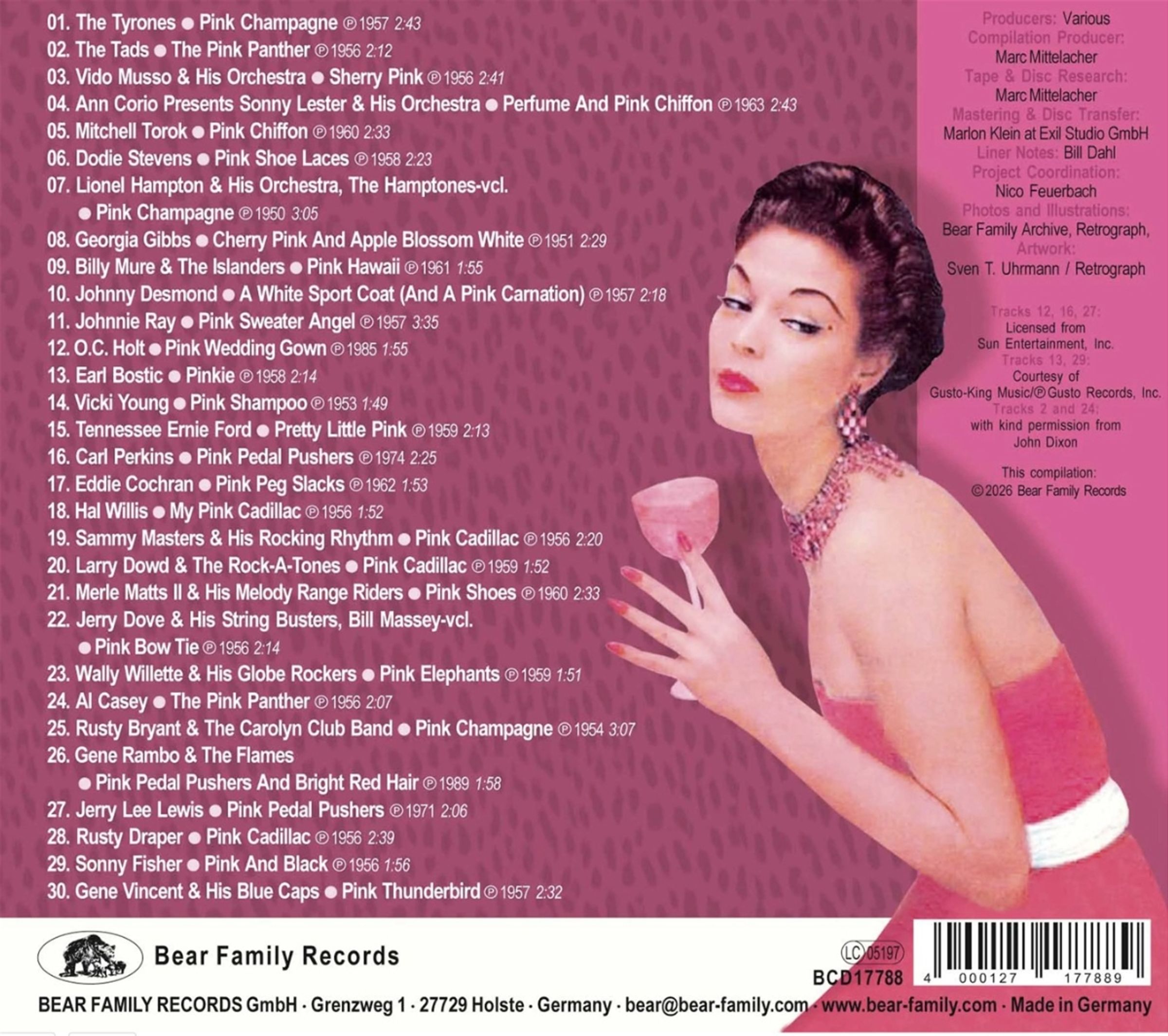 • Thematische Bear Family Records®-Compilation rund um Pink als Stil-, Lebens- und Klangsymbol der 1950er- und frühen 1960er-Jahre.