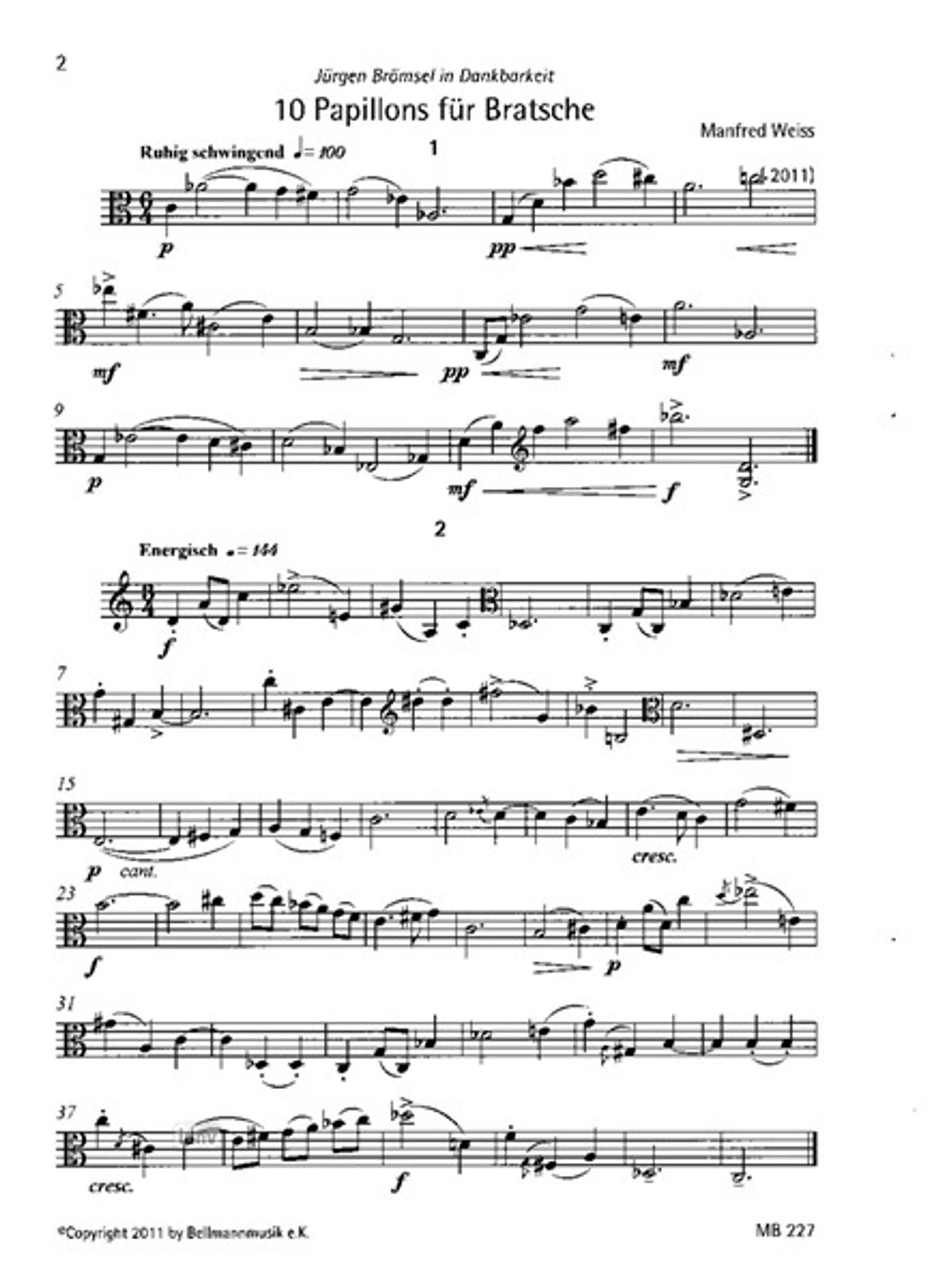 - Zehn kurze Vortragsstücke von etwa einer Minute Dauer, technische einfach gehalten