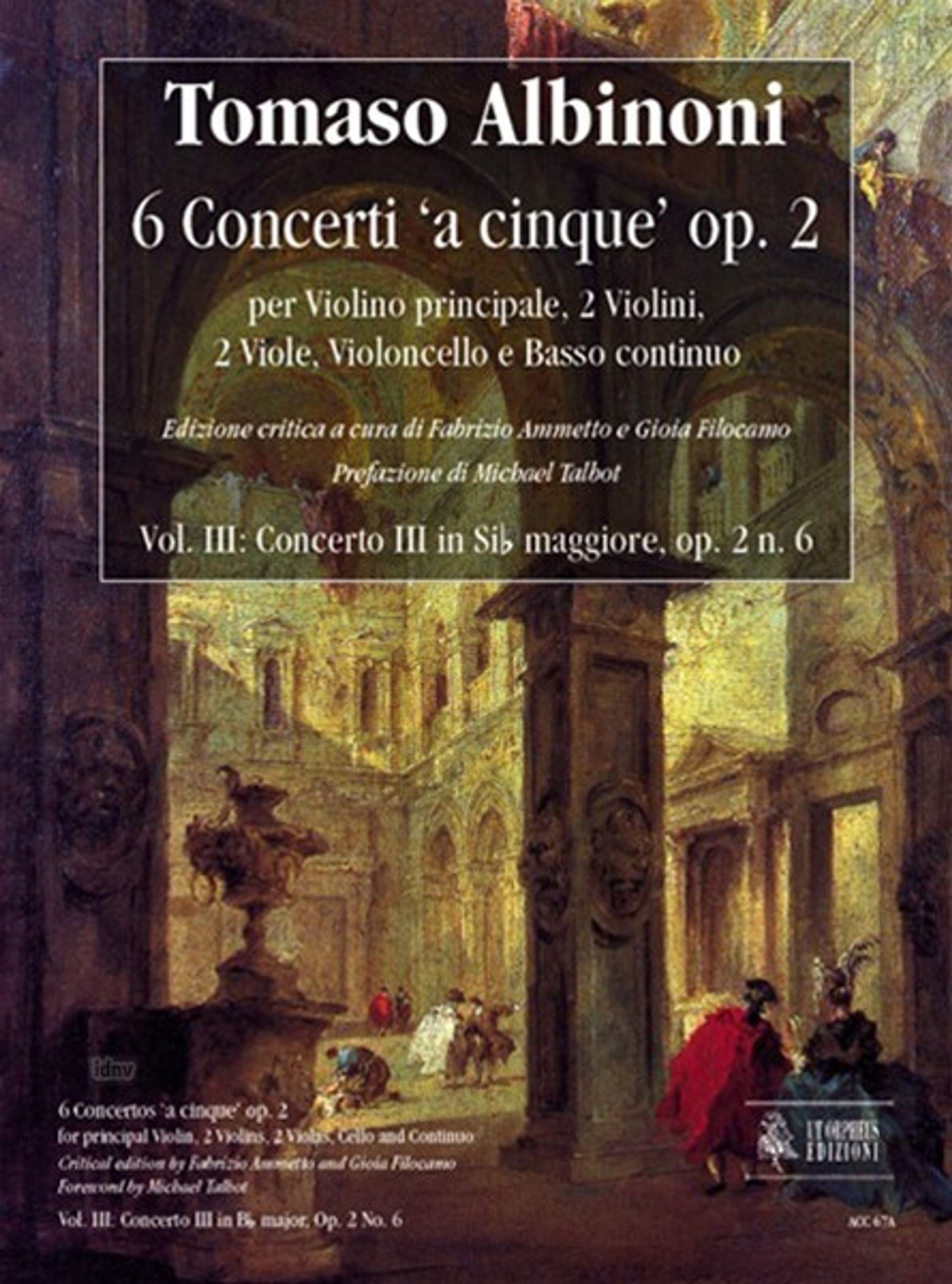 6 Concertos ‘a cinque’ Op. 2 for principal Violin, 2 Violins, 2 Violas, Violoncello and Continuo. Vol. III: Concerto III in B flat major, op. 2 n. 6. Critical Edition