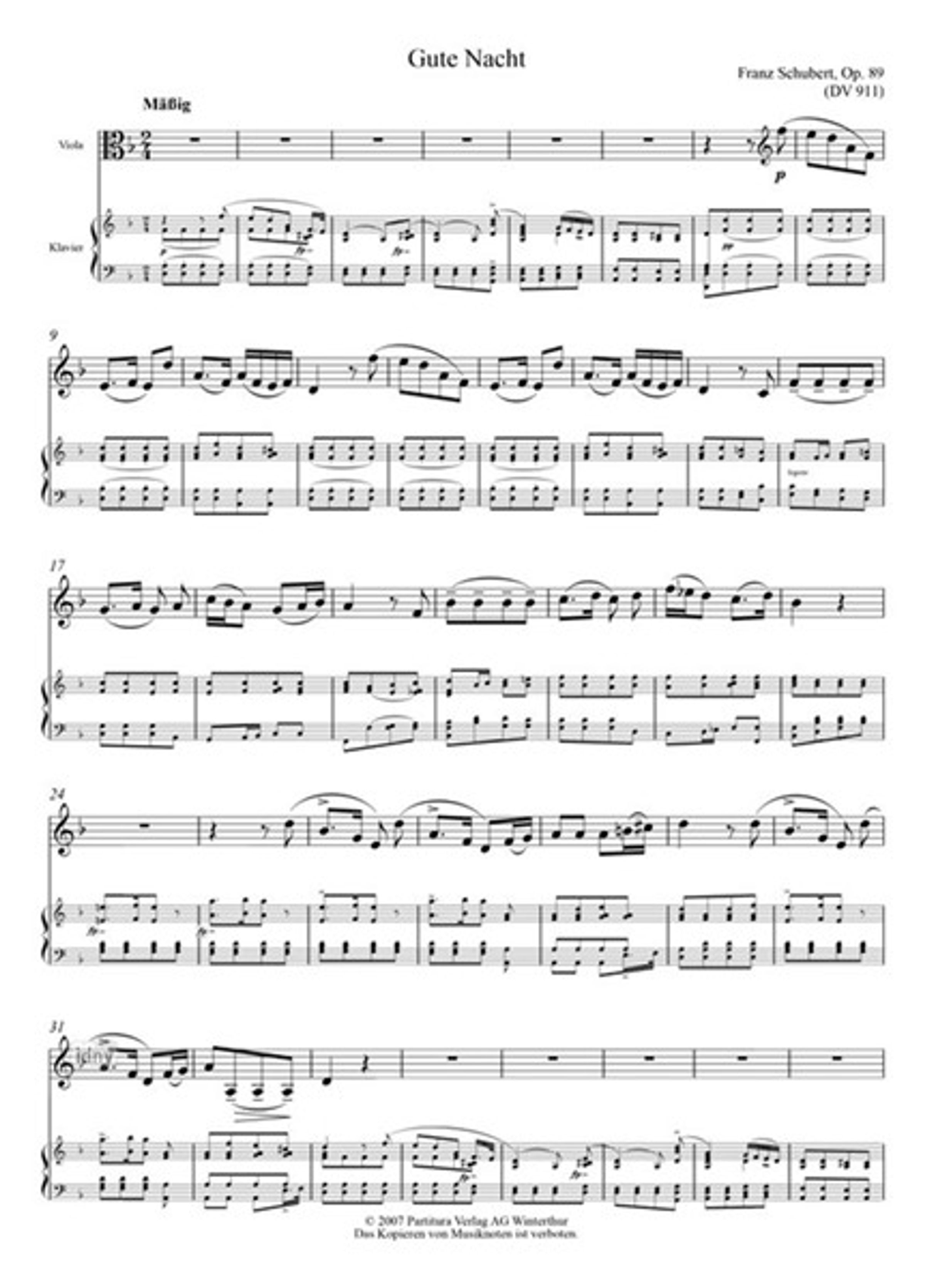 Franz Schubert: 8 Lieder aus der Winterreise für Viola und Klavier