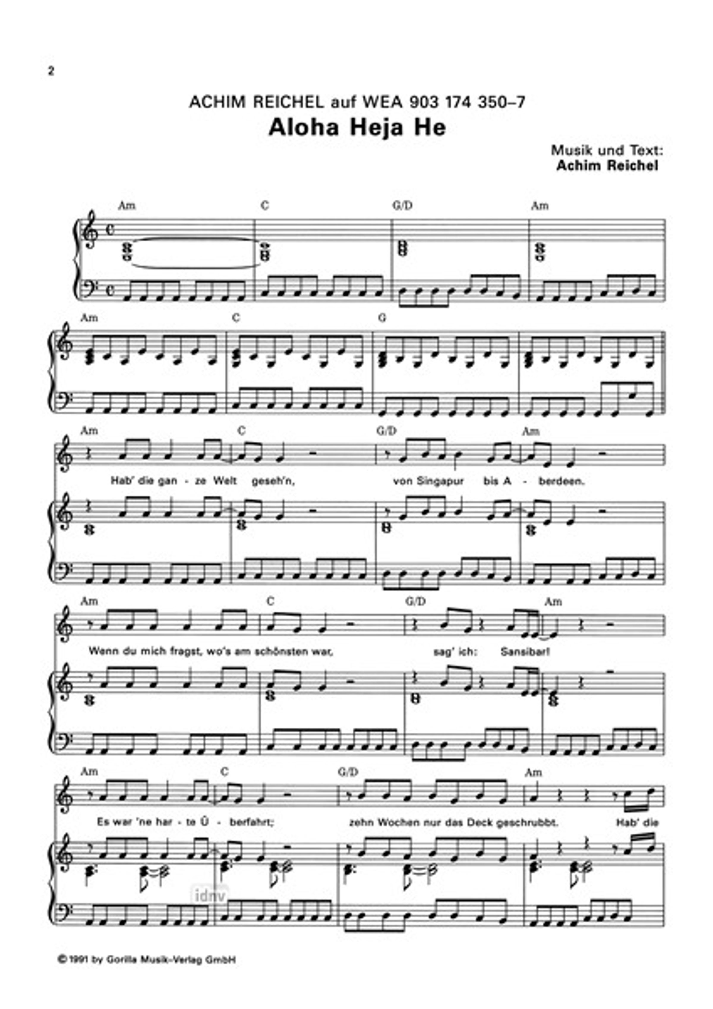 Aloha Heja He für Gesang und Klavier, Noten, Noten