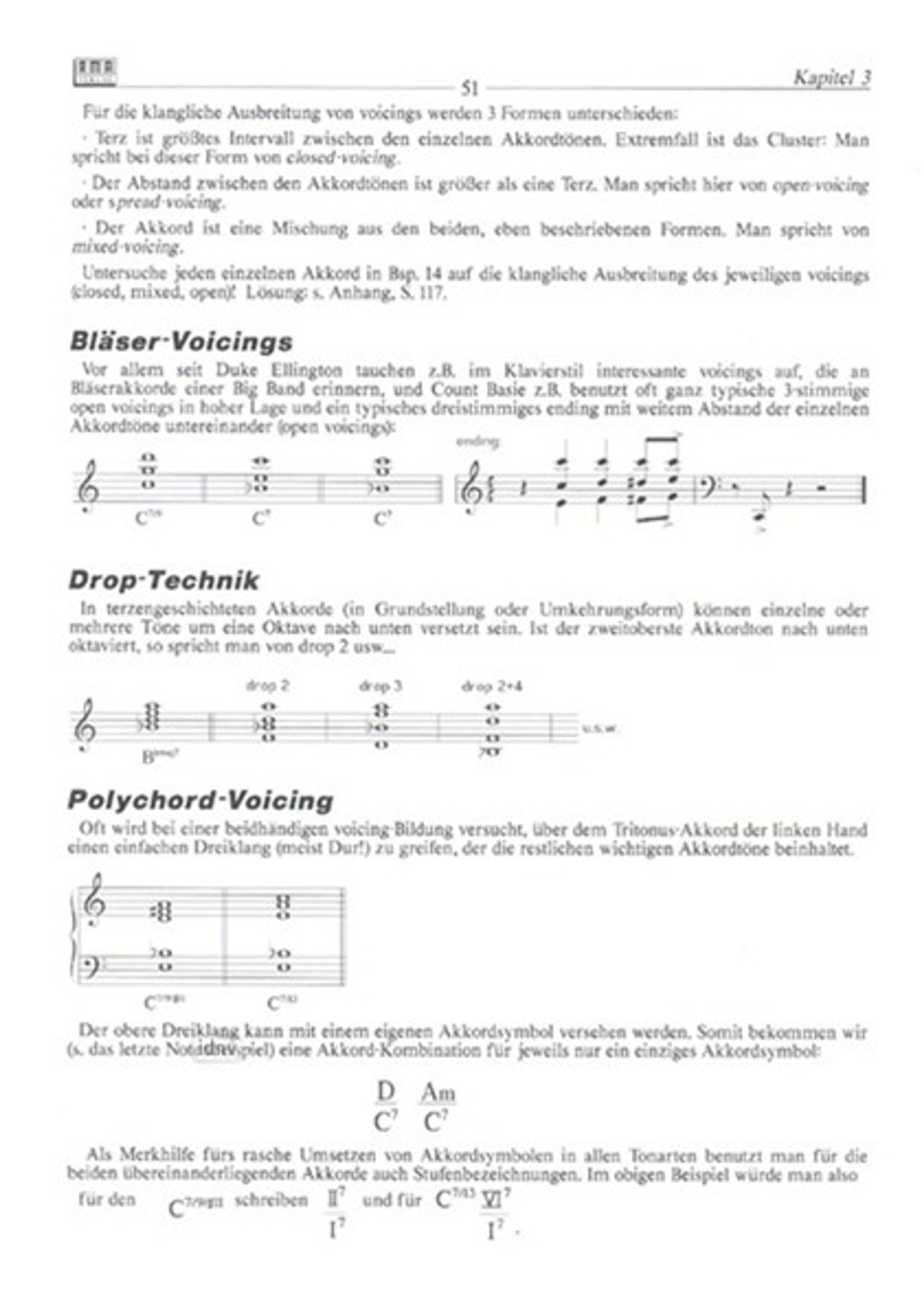 5. 5 Side­Slipping / Komplementäre Begleitharmonik / Quarten­Akkorde / 3stimmige Left­Hand­Voicings / Der Bebop­Blues / Der Turnaround / Komplexe Voicings / Binäre Grooves: / Gospel/Rock / Funk