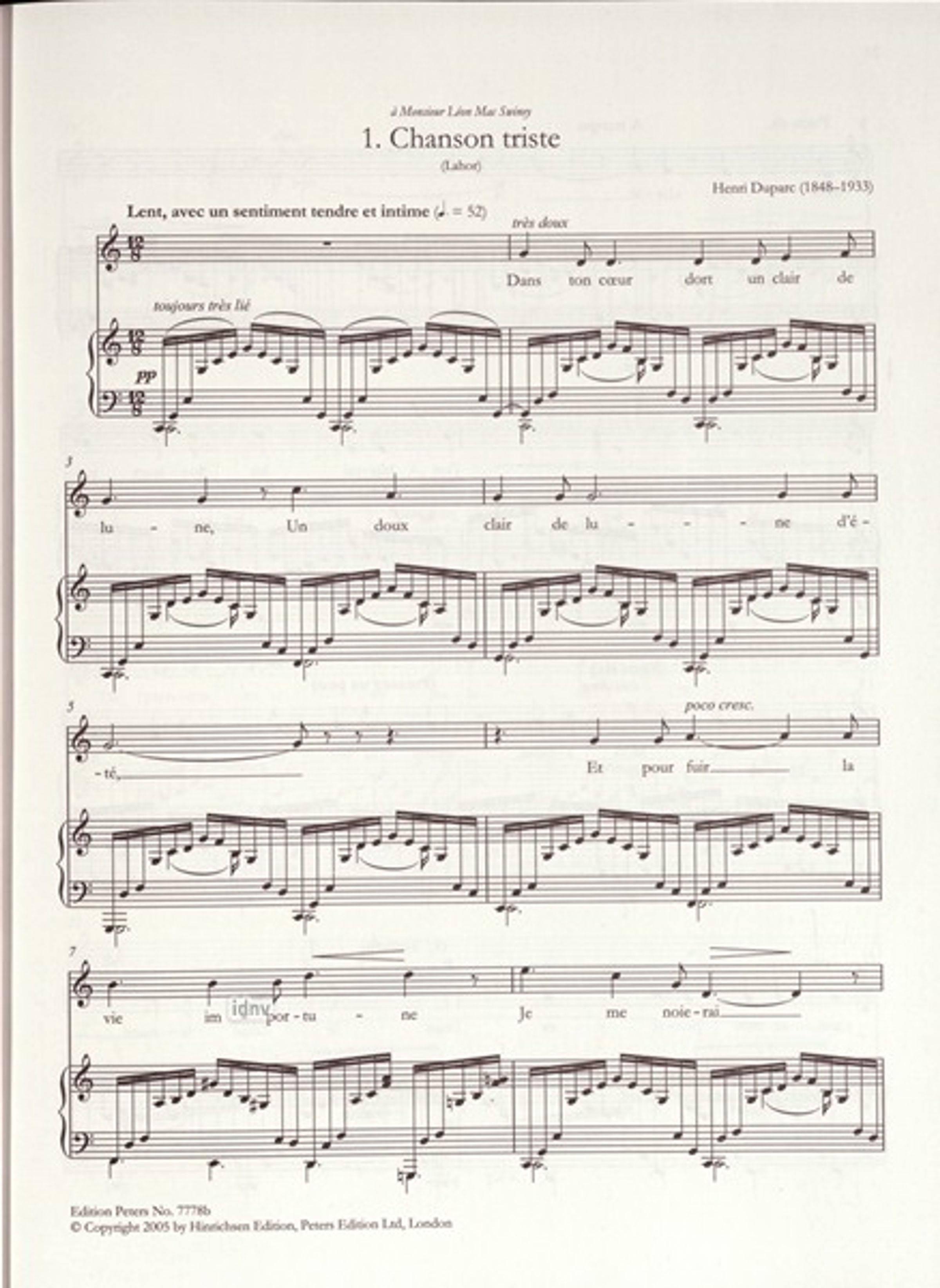 Die Complete Songs für Mittlere-Tiefe Stimme und Klavier des Komponisten Henri Duparc wurde von Roger Nichols herausgegeben und enthält Texten auf Englisch, Deutsch und Französisch.