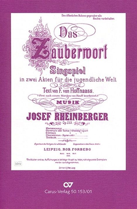 Josef Rheinberger: Das Zauberwort op. 153 (1888), Noten, Noten