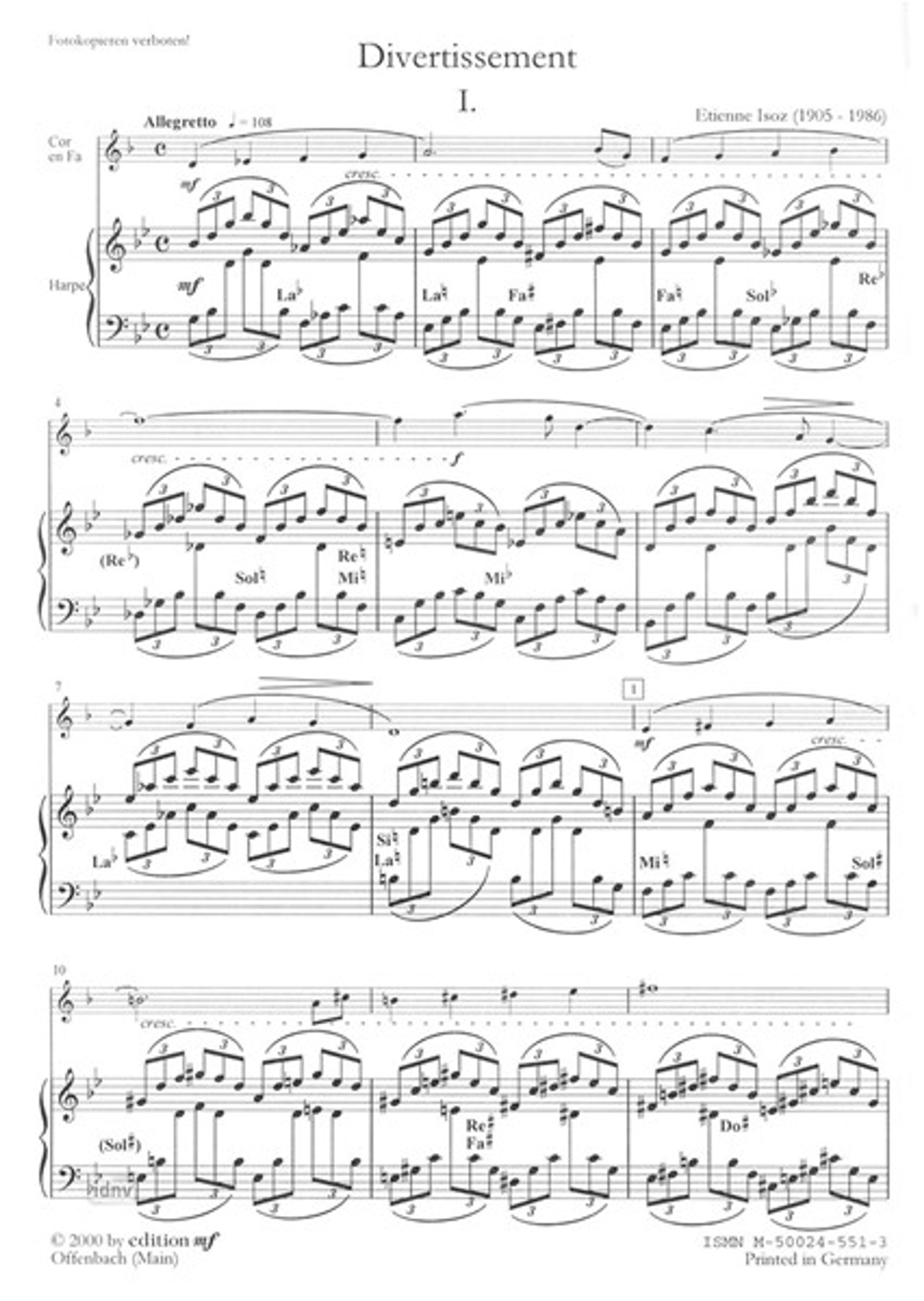 Etienne Isoz: Divertissement pour Cor et Harpe