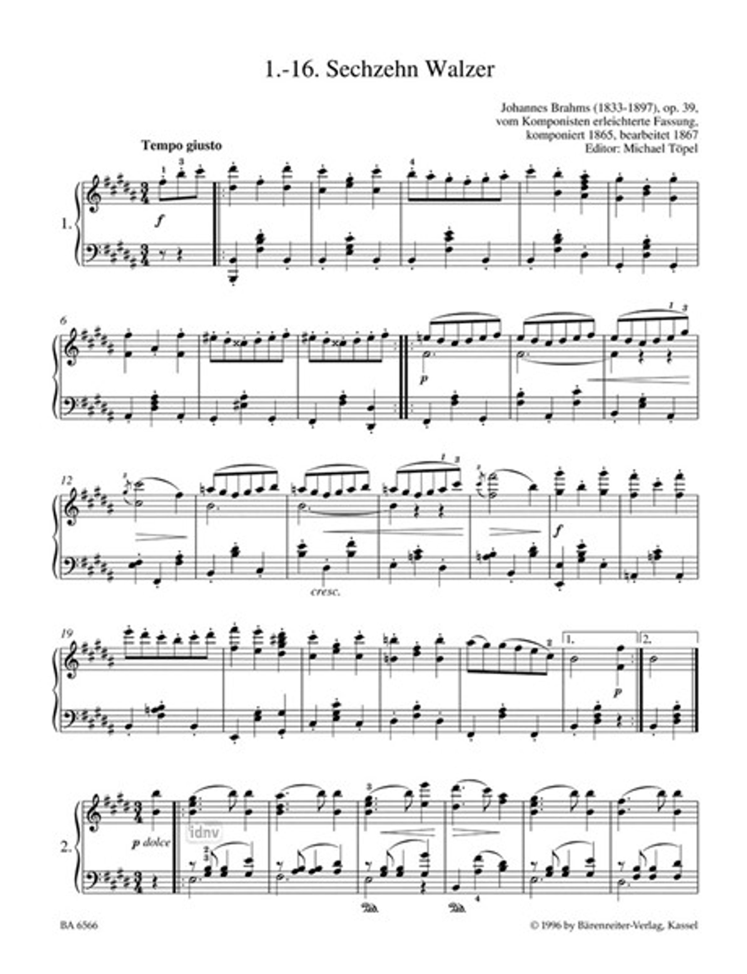 - 16 Walzer op. 39 (vom Komponisten erleichterte