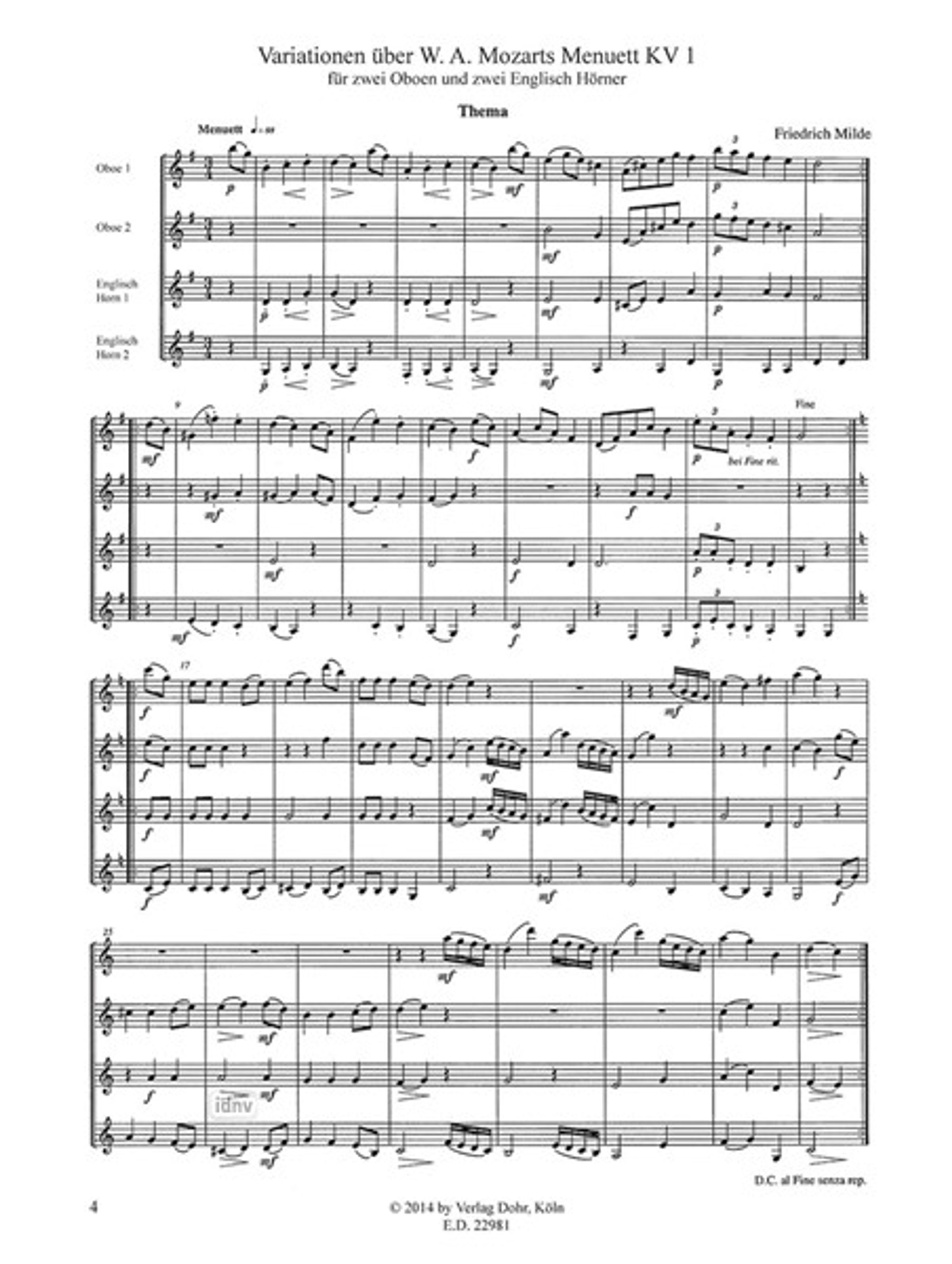 Friedrich Milde: Mozart-Variationen (Menuett KV 1) für zwei Oboen und zwei Englisch Hörner