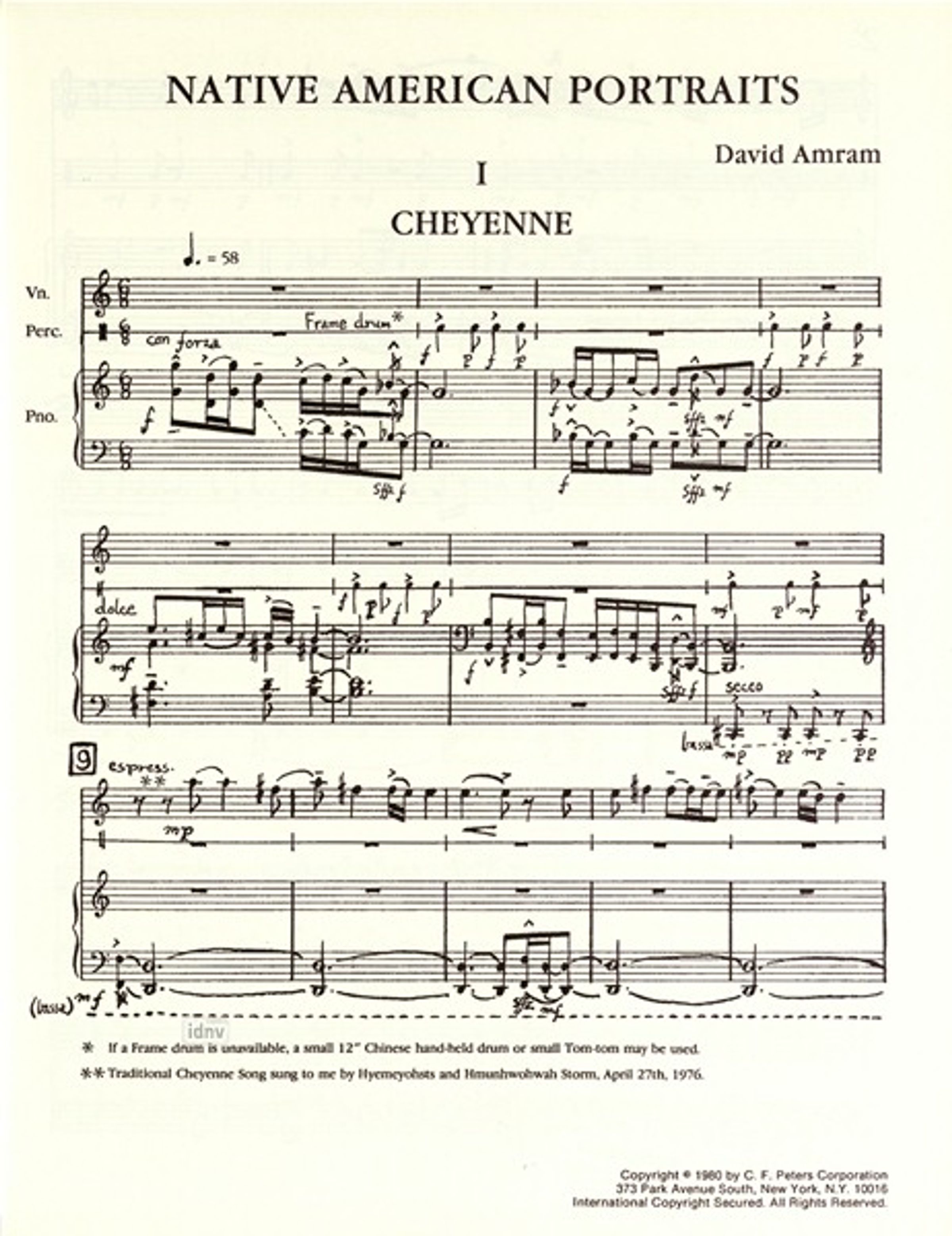 David Amram: Native American Portraits für Violine, Klavier und Schlagzeug