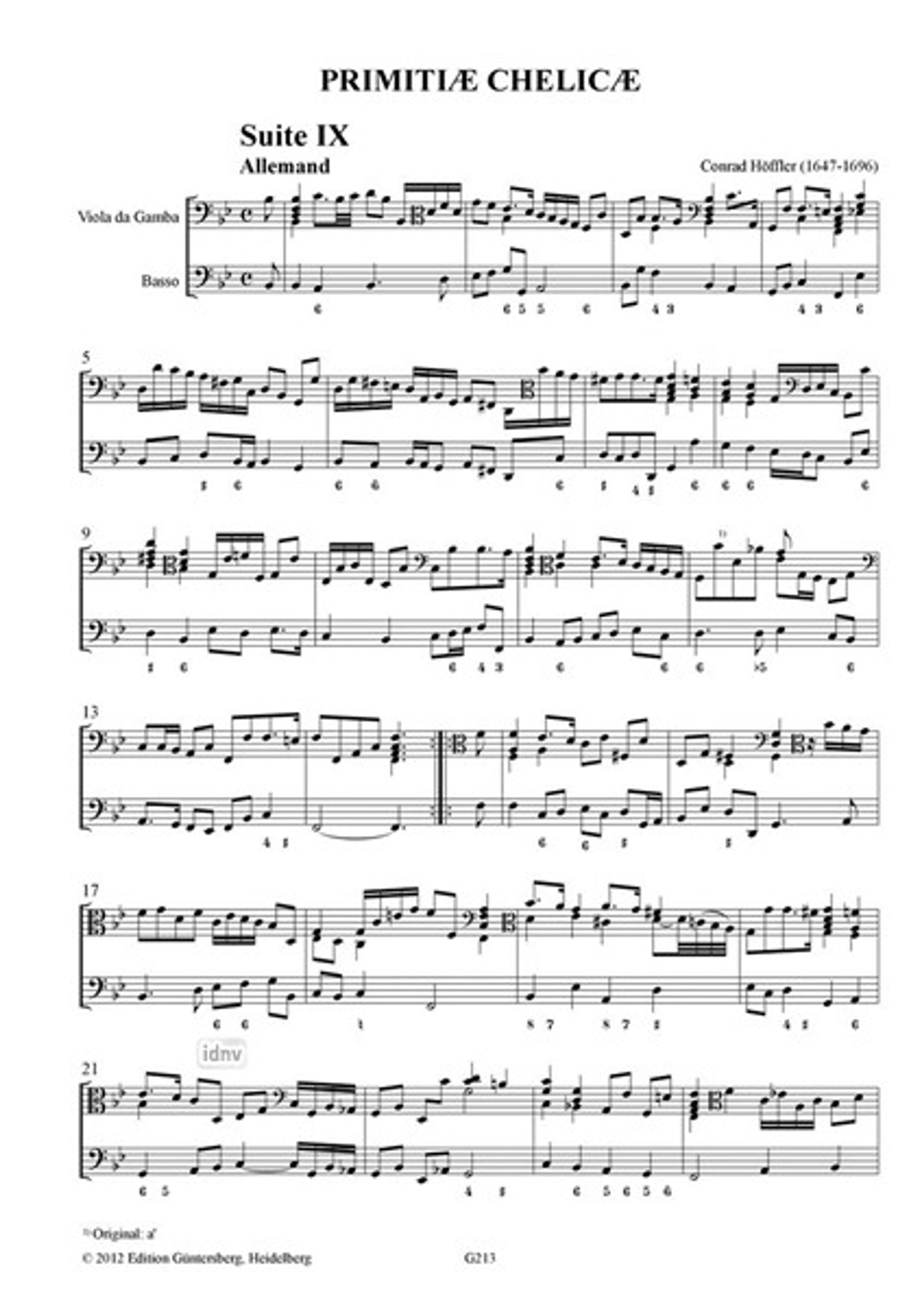 Conrad Höffler: Primitiae Chelicae, Suiten IX-XII für Viola da Gamba und Basso continuo (Nürnberg 1695)