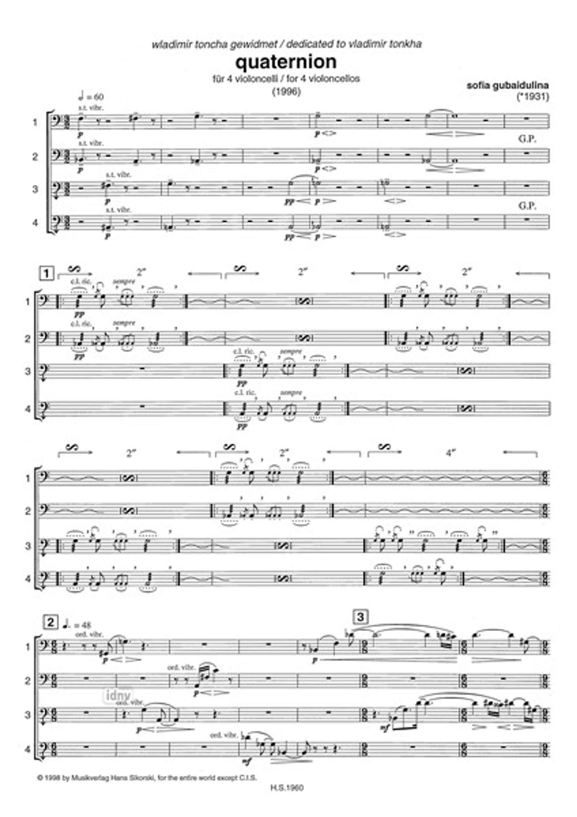Sofia Gubaidulina: Quaternion für 4 Violoncelli, Noten