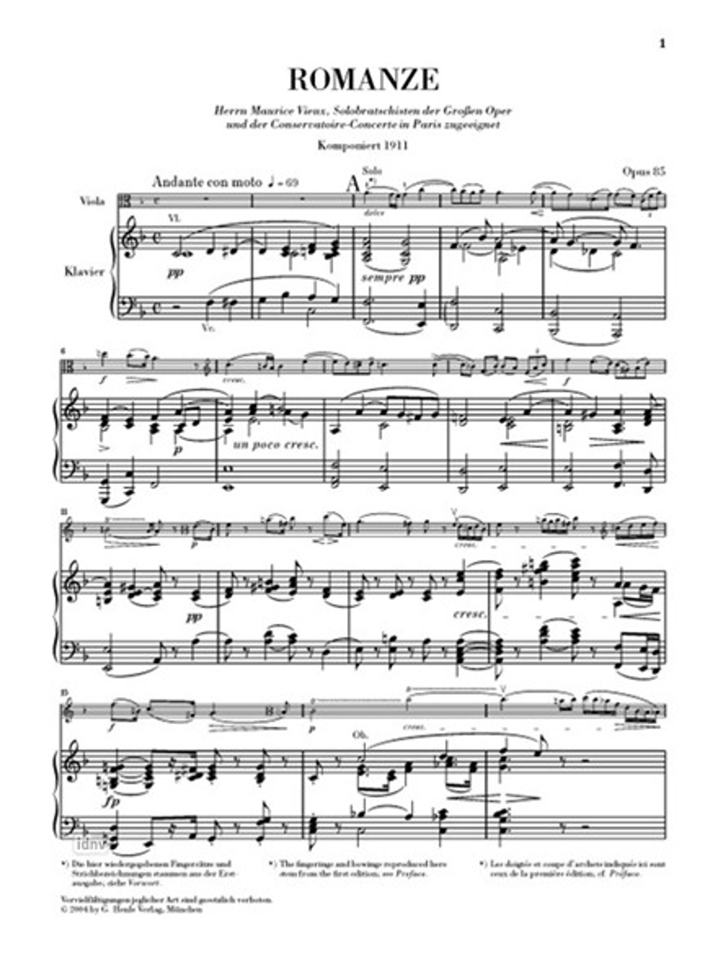 Weitere Ausgaben von Romanze für Viola und Orchester F-dur op. 85 |