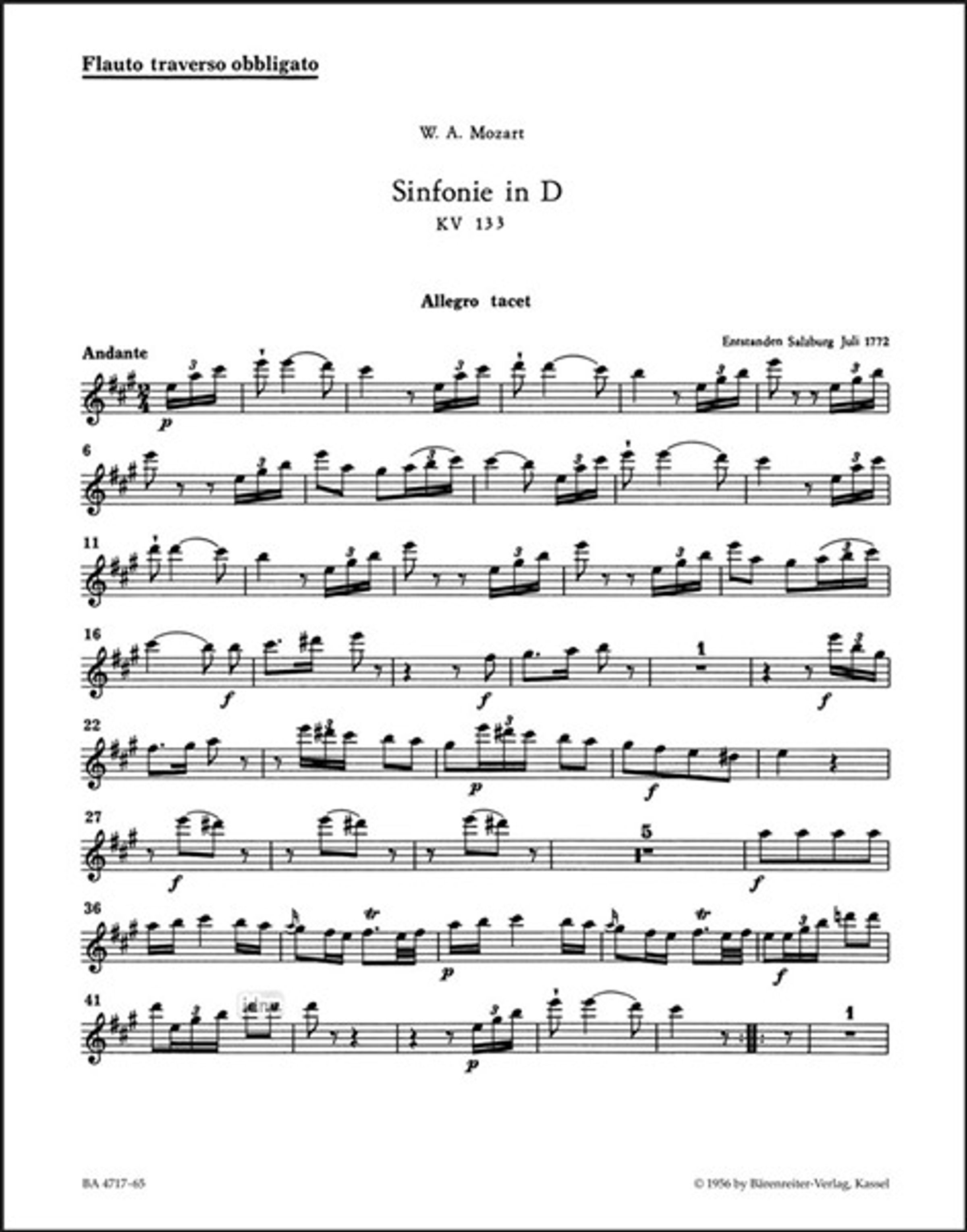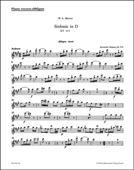 Wolfgang Amadeus Mozart: Sinfonie Nr. 20 D-Dur KV 133