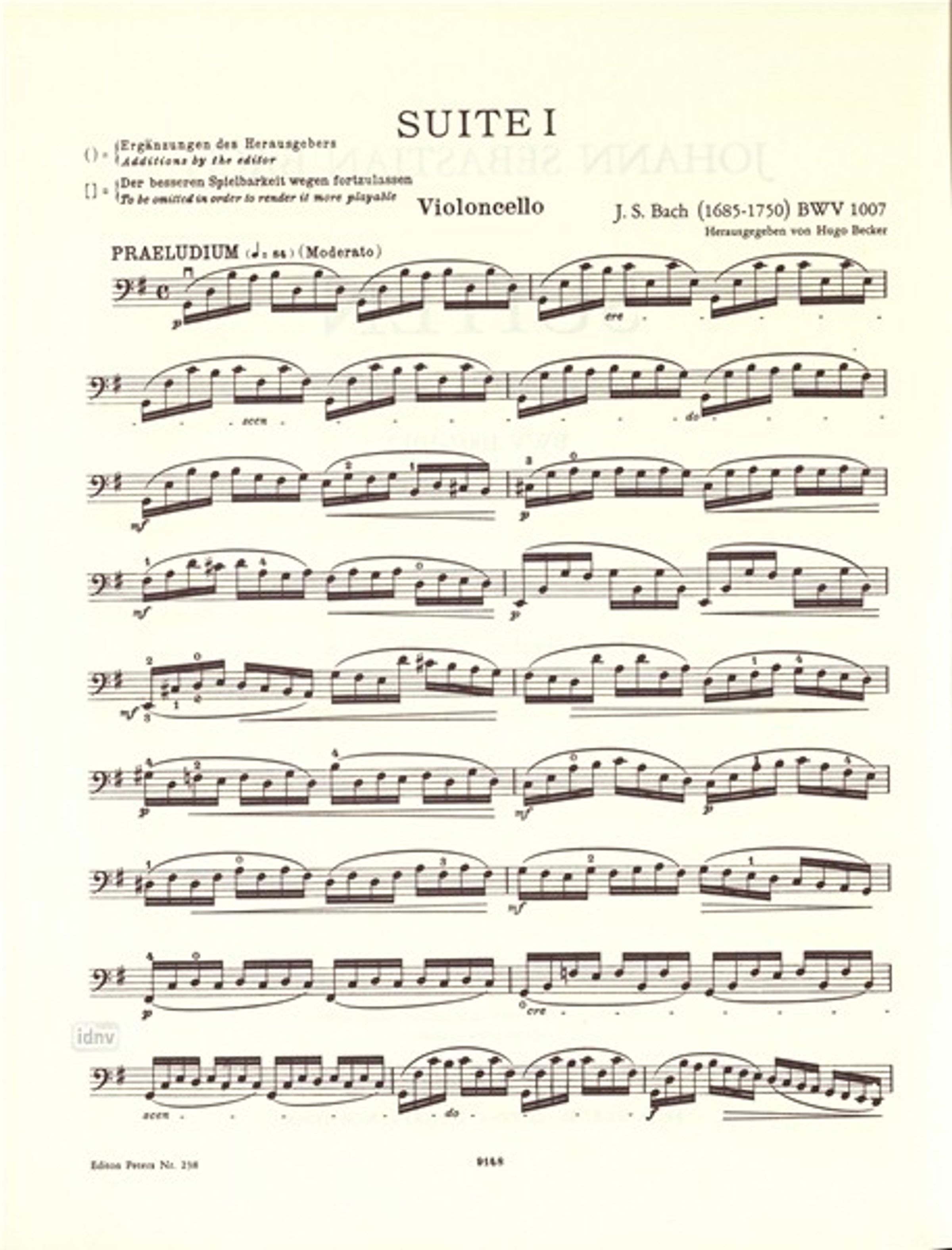 Vielleicht das großartigste aller Werke für das Solo-Cello. Bachs 6 Cellosuiten BWV 1007-1012, herausgegeben von Hugo Becker.