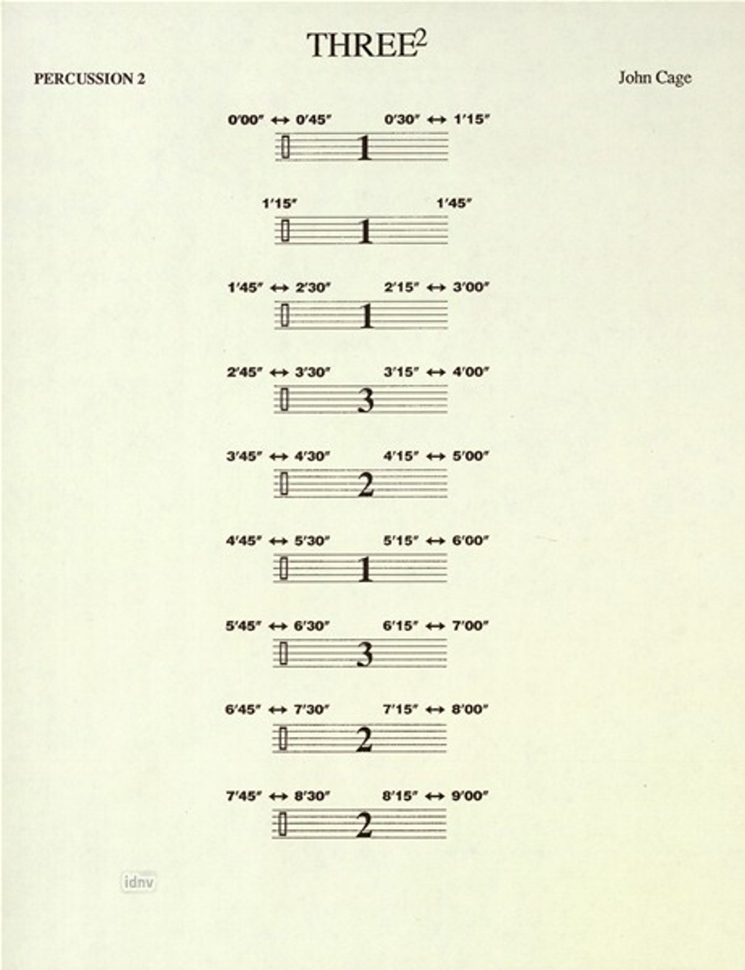 John Cage: Three 2 for 3 percussionists, Noten, Noten