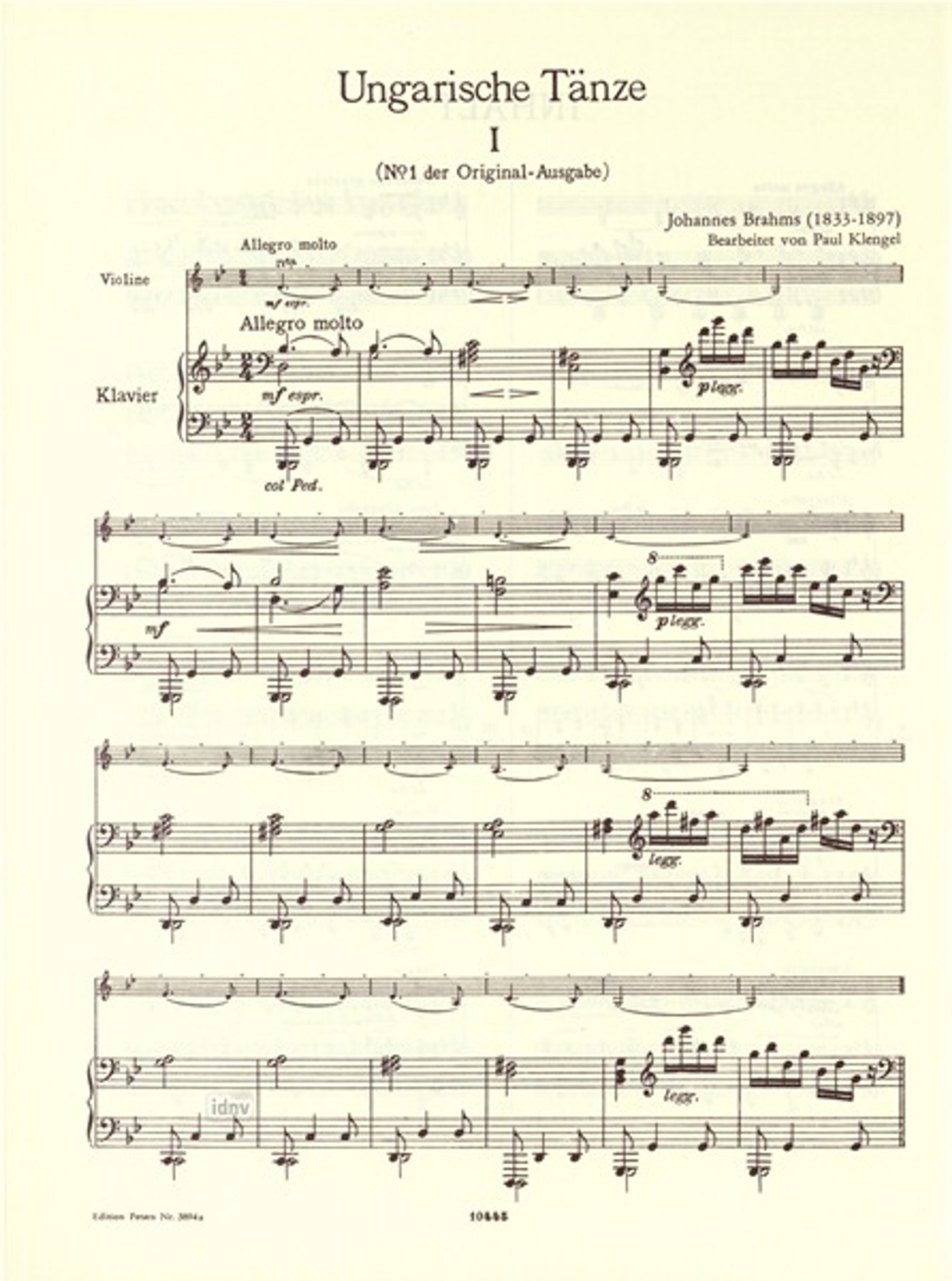 Johannes Brahms' Ungarische Tänze enthalten 12 Stücke, welche von Paul Klengel für Violine und Klavier arrangiert wurden.