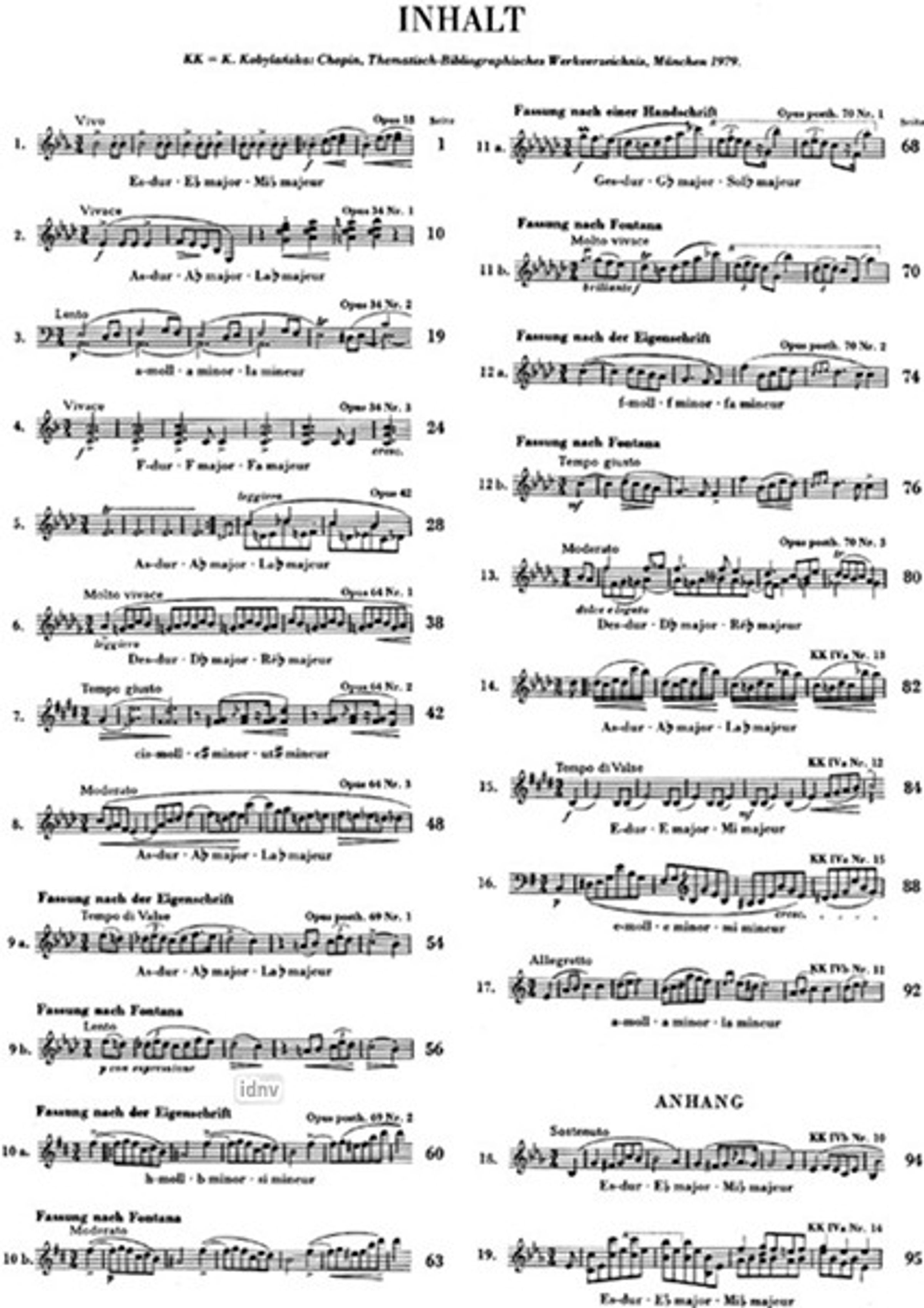 Chopin revolutionierte die Etüde - er adelte den Walzer. Sein ganzes Leben lang beschäftigte er sich immer wieder mit dieser Gattung und schuf ein breites Spektrum an Formen, von virtuosen Paradestücken - den Grandes Valses Brillantes - bis zu tiefmelancholischen Stimmungsbildern. Nur eines ist allen Werken gemeinsam: tanzen kann und soll man diese Walzer nicht! Unser Band enthält sämtliche Walzer Chopins, die zu Lebzeiten oder postum erschienen, darunter populäre Geniestreiche wie etwa den sogenannten Minutenwalzer (op. 64 Nr. 1). Dort, wo zwei authentische Versionen des gleichen Walzers überliefert sind, bringen wir selbstverständlich den Urtext beider Fassungen.