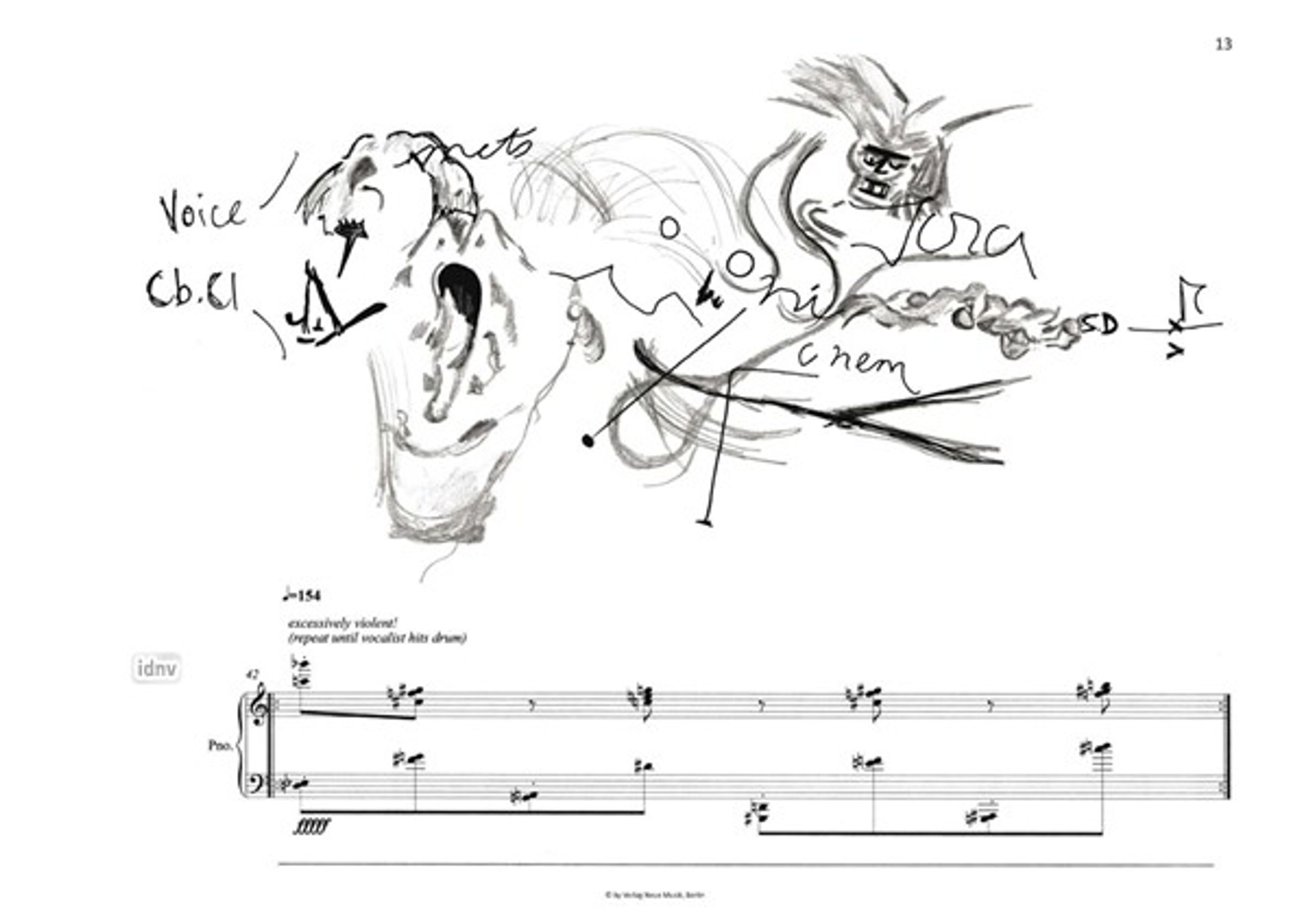 • an Kontrabassklarinette, Klarinette in B, Männerstimme, Side Drum, Gong und Klavier/Keyboard (Orgel)