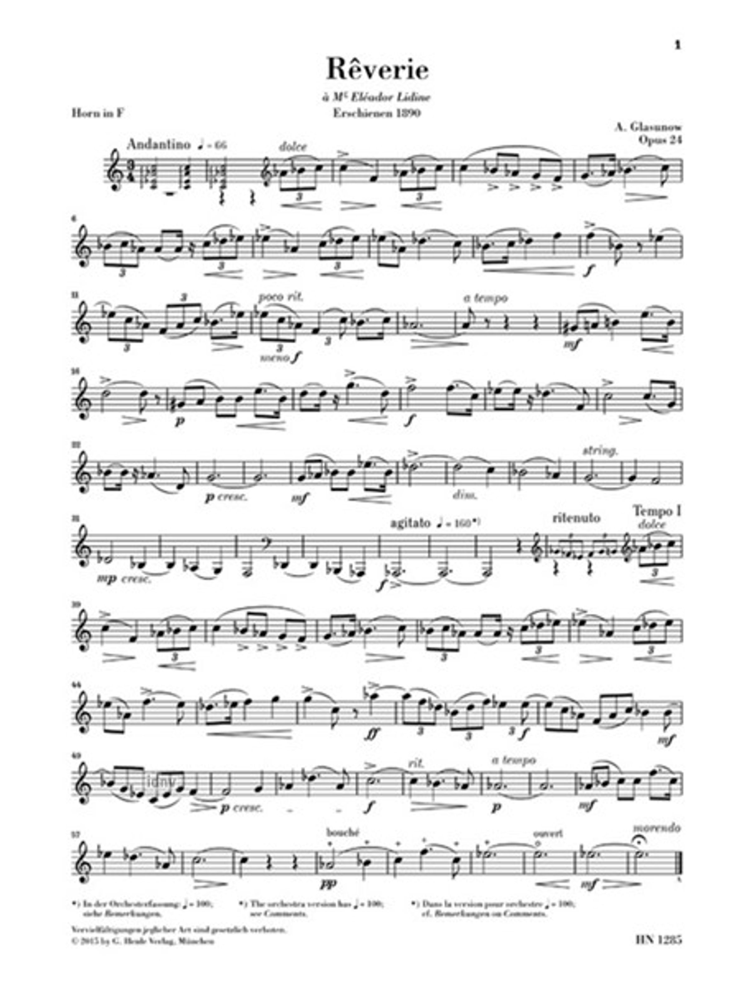 Alexander Glasunow: Reverie op. 24 für Horn und Klavier