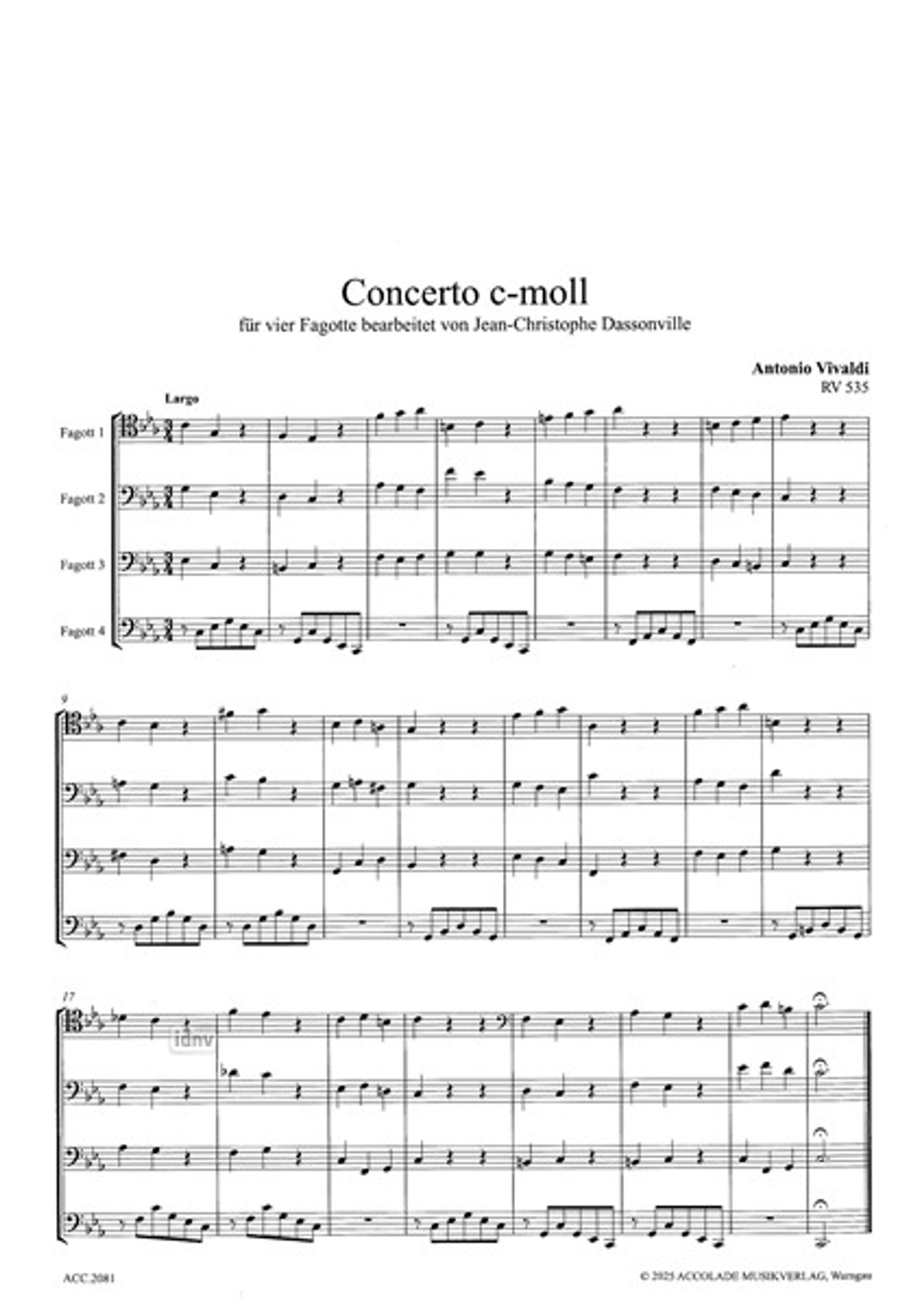 Antonio Vivaldi, Quartett c-moll für vier Fagotte, RV 535, grüne und dunkelgrüne Gestaltung, Accolade Musikverlag., Noten