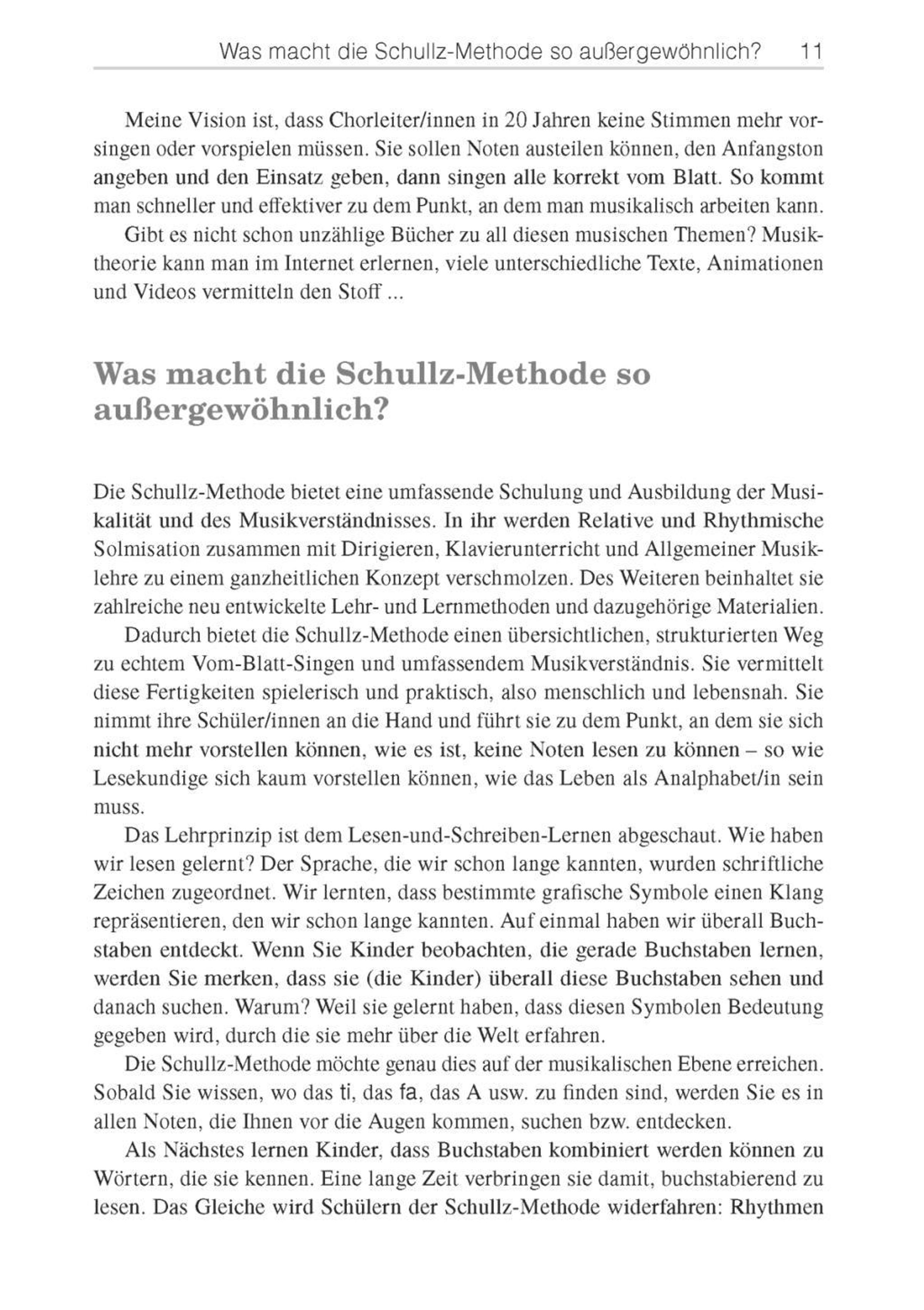 Die Schullz-Methode ebnet den Weg zu einer guten Tonvorstellung und sicherem Vom-Blatt-Singen. Mit spielerischen Methoden und einer klaren Struktur führt sie zu einem umfassenden Musikverständnis. Im Buch wird die Methode mit ihren zahlreichen Lehr- und Lerntechniken beschrieben und erläutert.