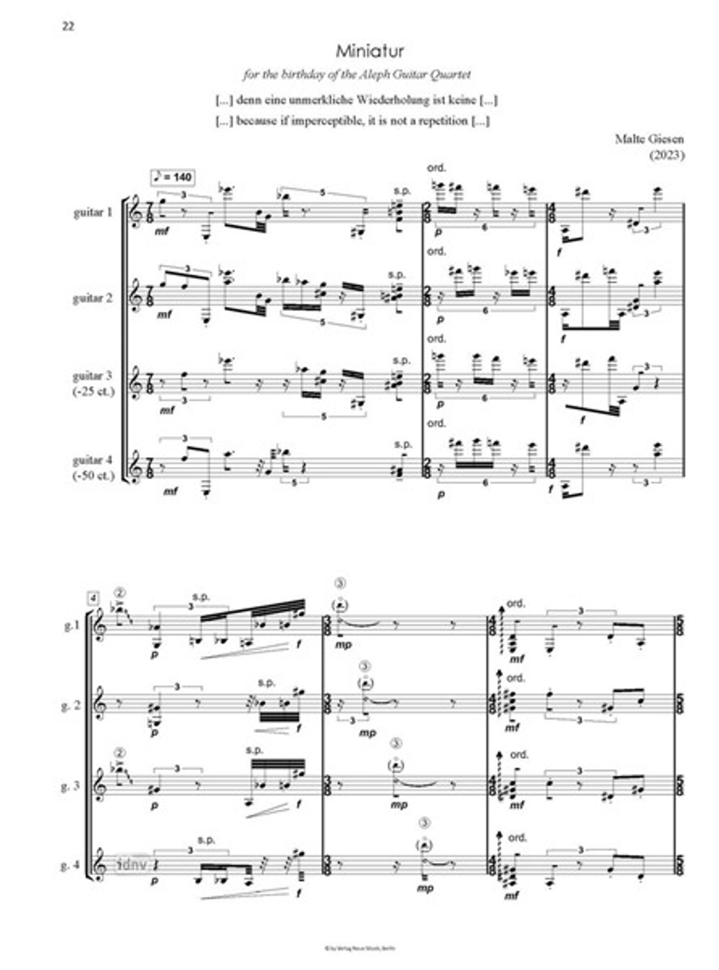 2. 2 Giesen, Malte: Miniatur zum Geburtstag für das Aleph Gitarrenquartett