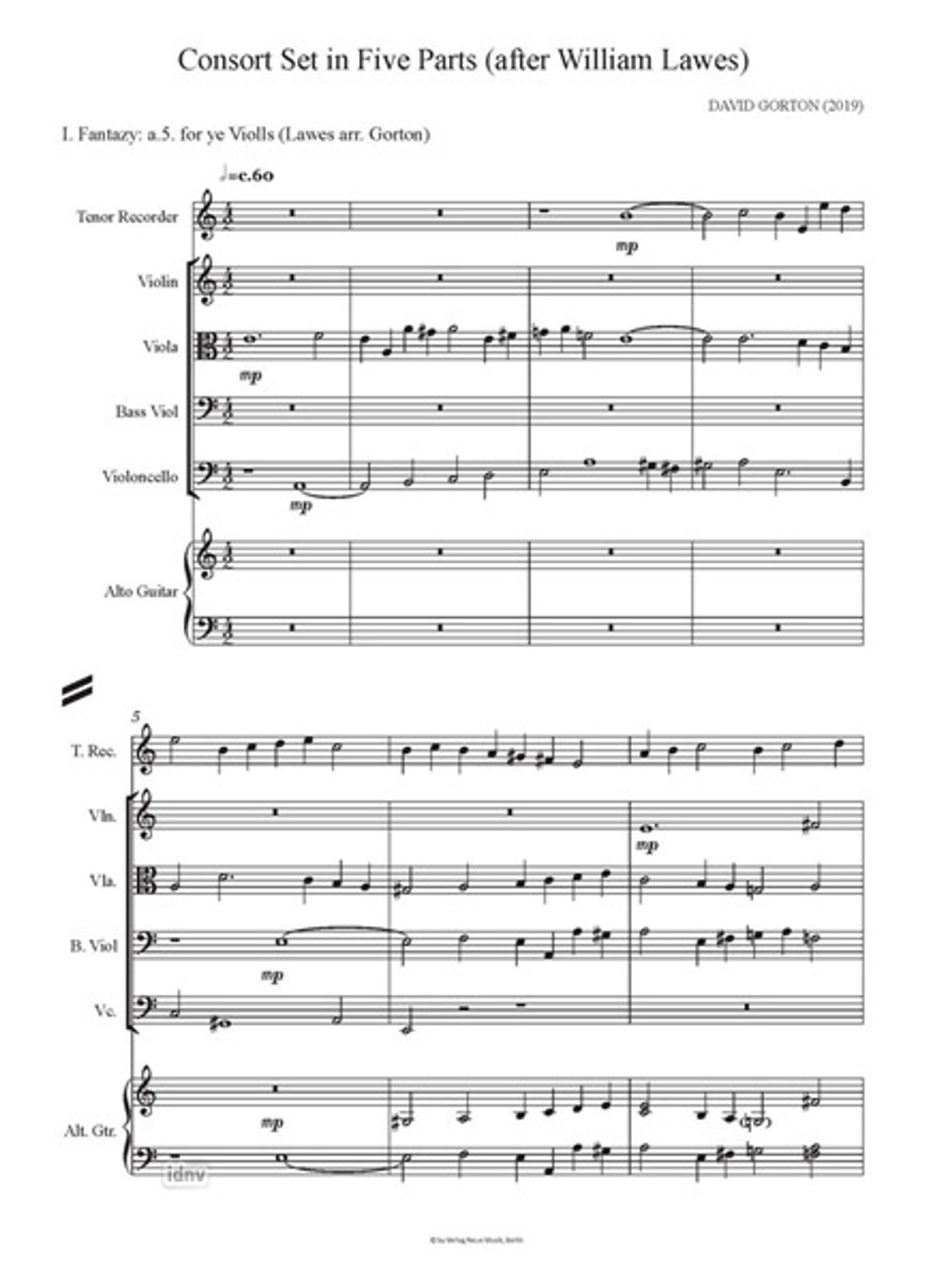 Consort Set in Five Parts für Blockflöte, Violine, Viola, Bassgambe, Violoncello und elfsaitige Altgitarre (2019)