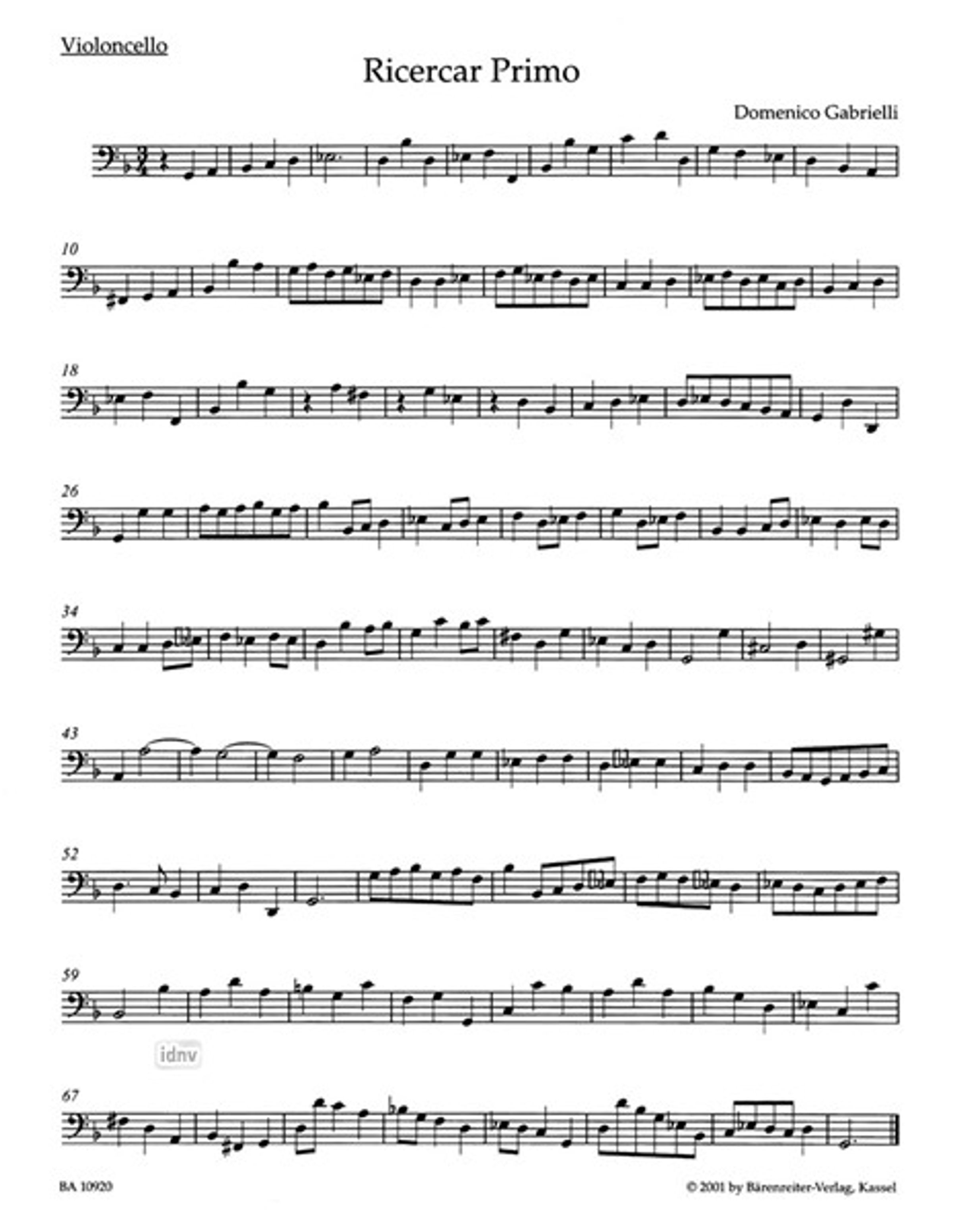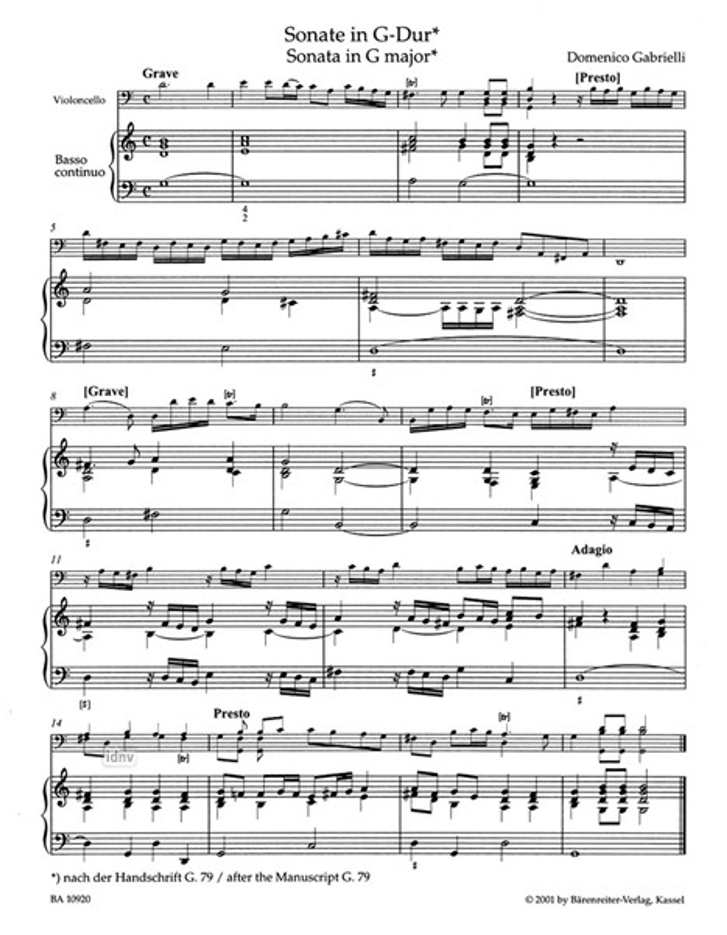 - Cello solo, Celli (2), Cello, Basso continuo