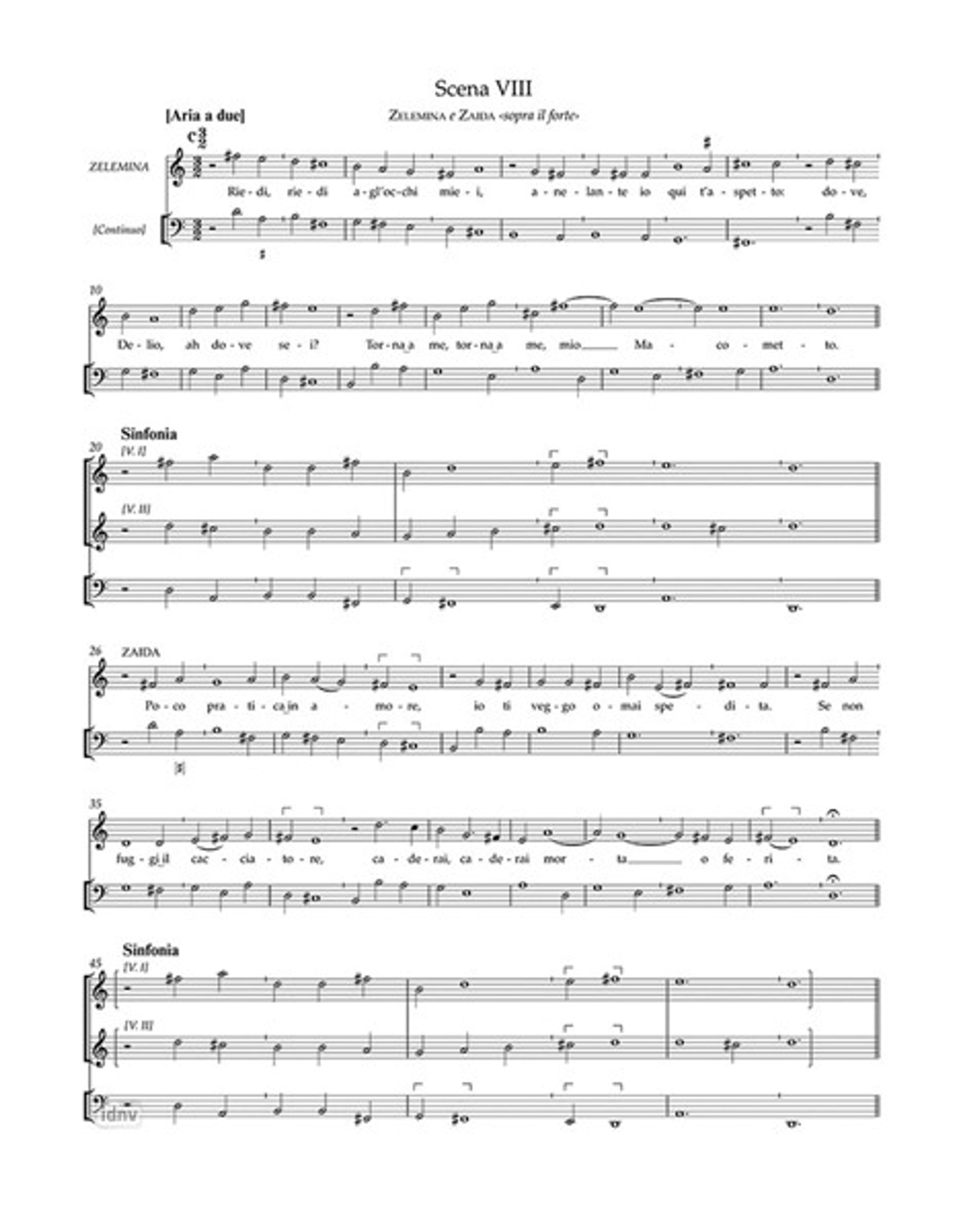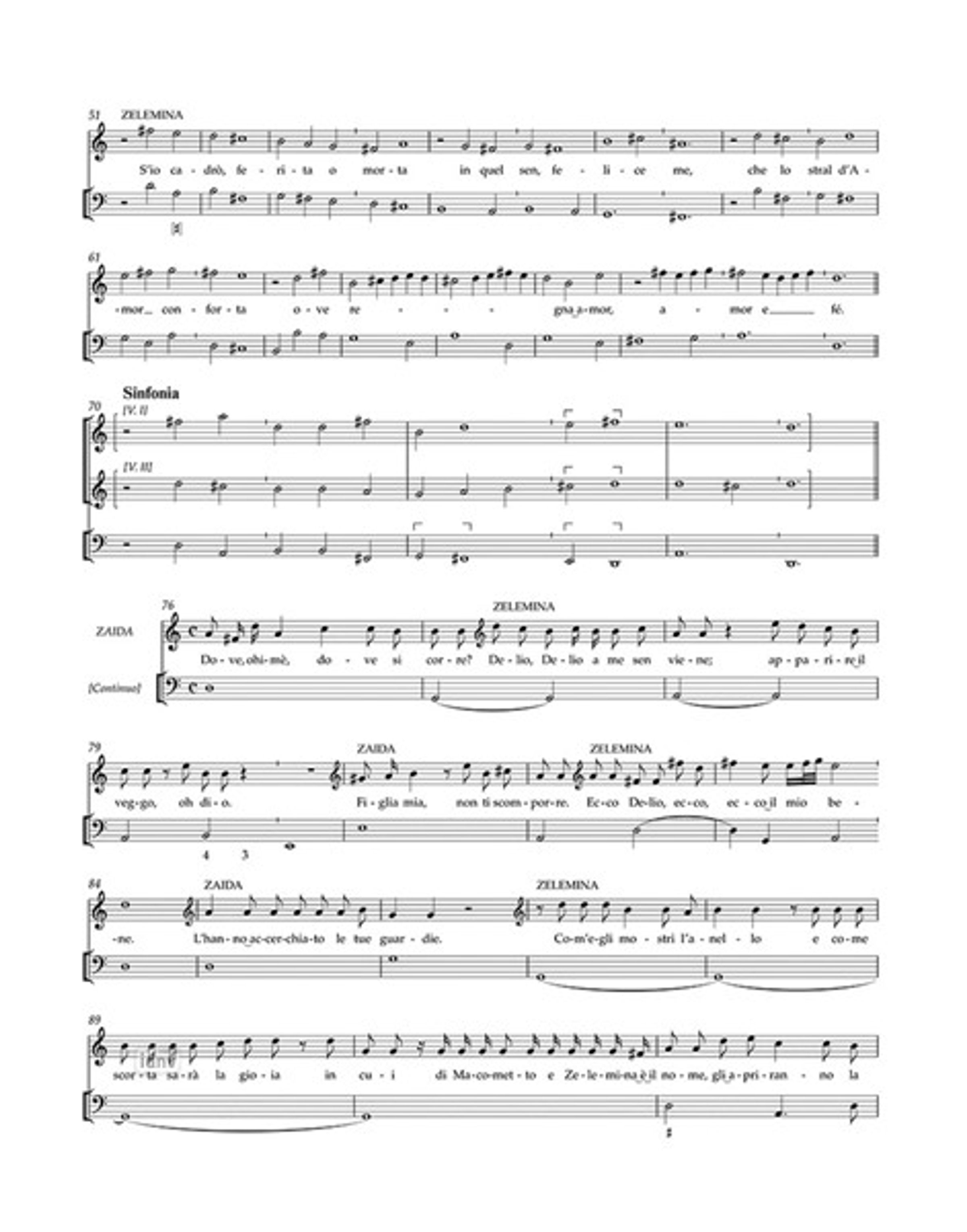 - Soprane (7), Mezzosopran, Alte (4) (oder Alt (1) und Mezzosoprane (3)), Tenöre (3), Baritone (2), Violinen (2), Violetta, Viola, Tanpura / Tambura, Basso contin