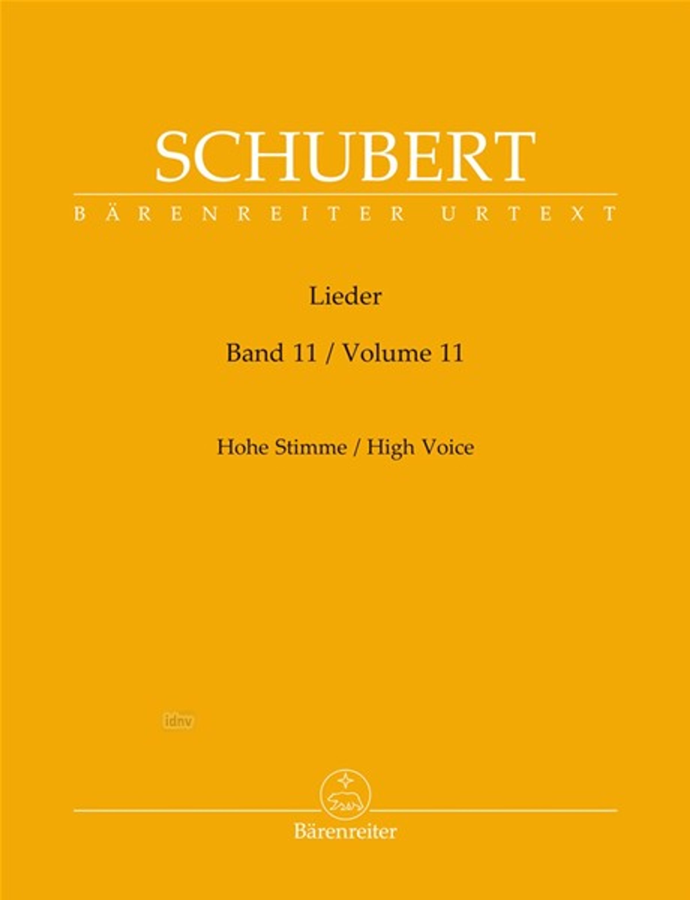 Schubert Lieder Band 11 / Volume 11 Hohe Stimme / High Voice. Gelber Hintergrund. Logo unten mittig., Noten