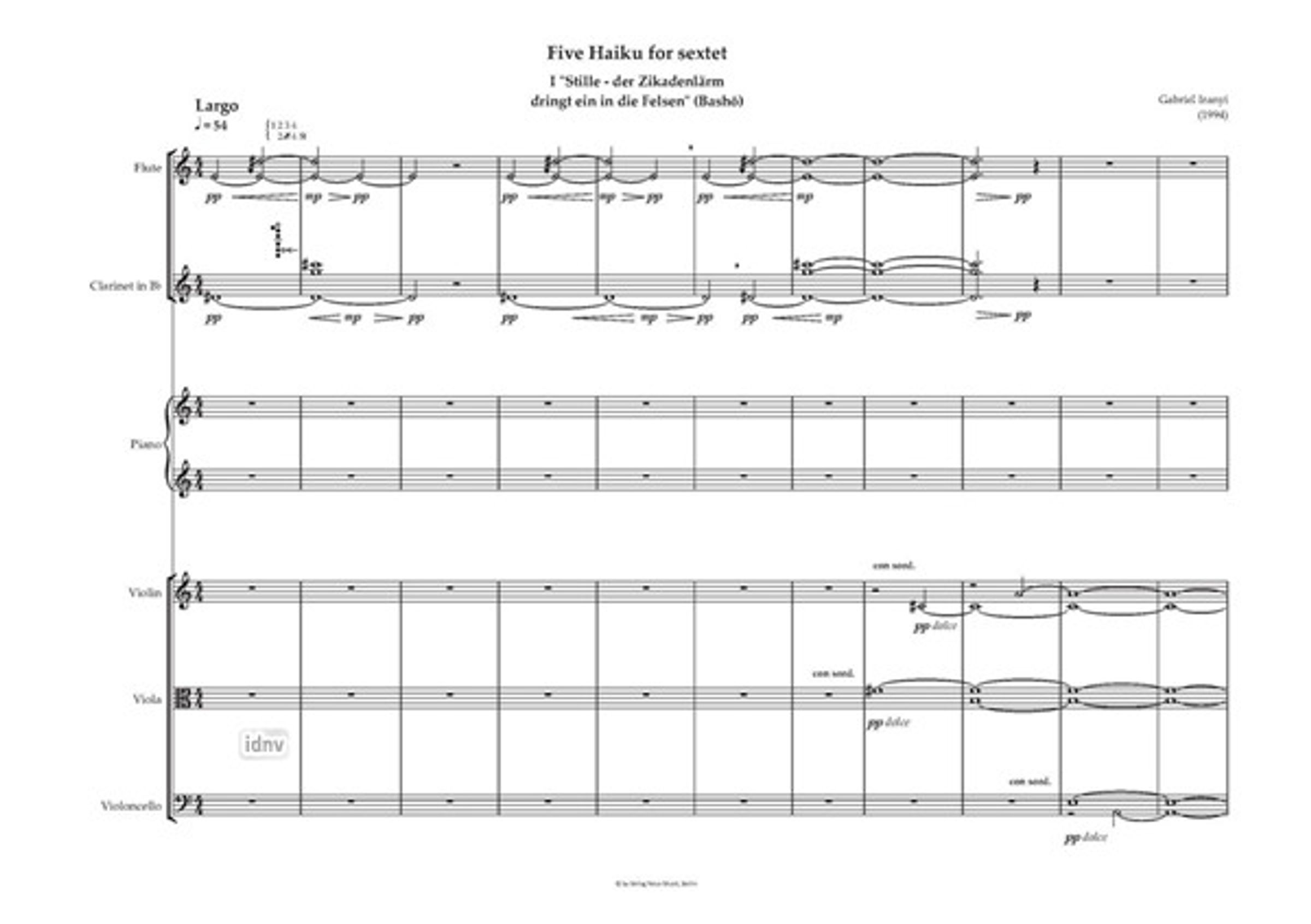 Gabriel Iranyi: Fünf Haiku für Sextett (1995), Noten