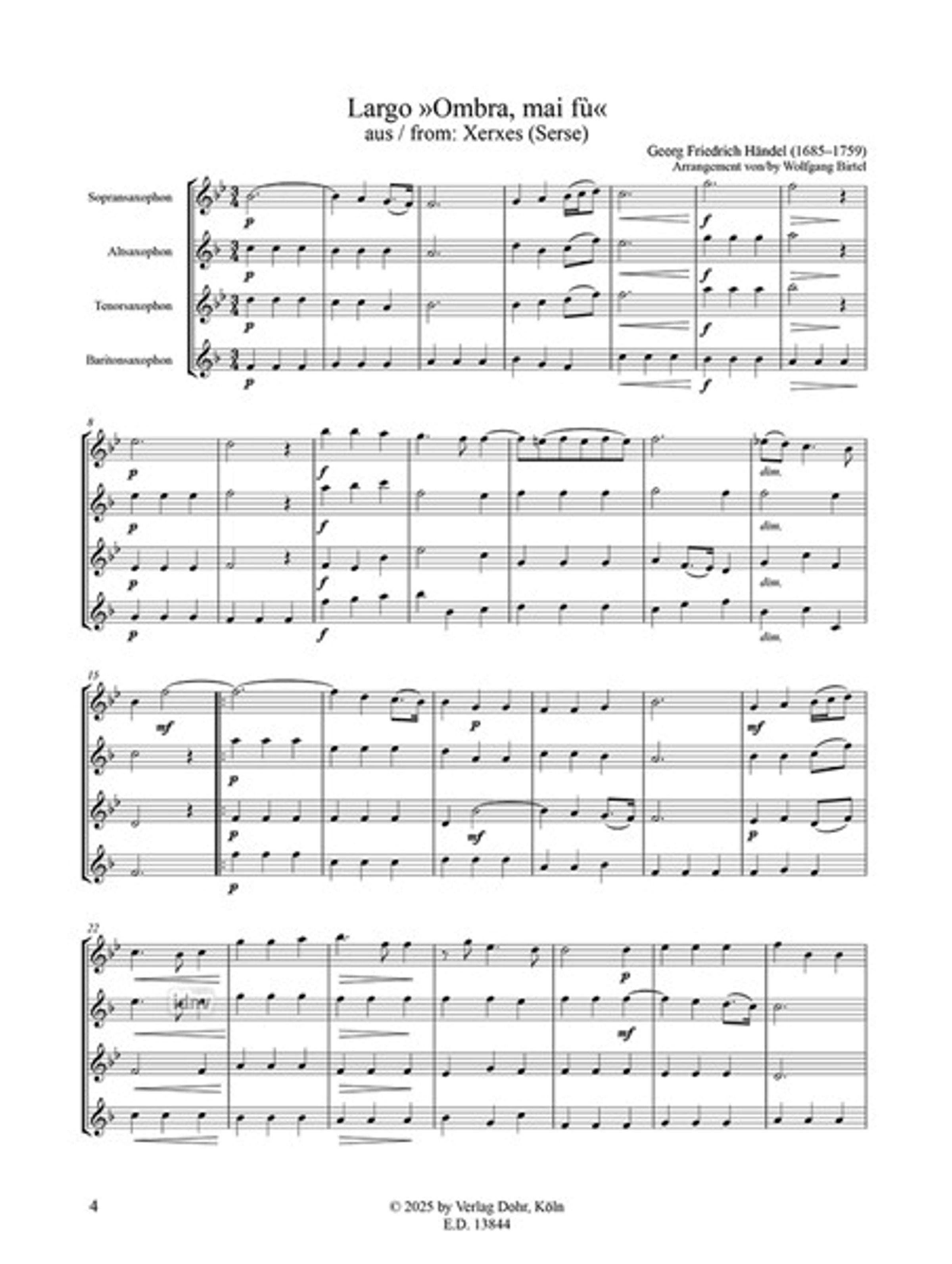 - für Saxophonquartett (SATBar); aus "Xerxes"