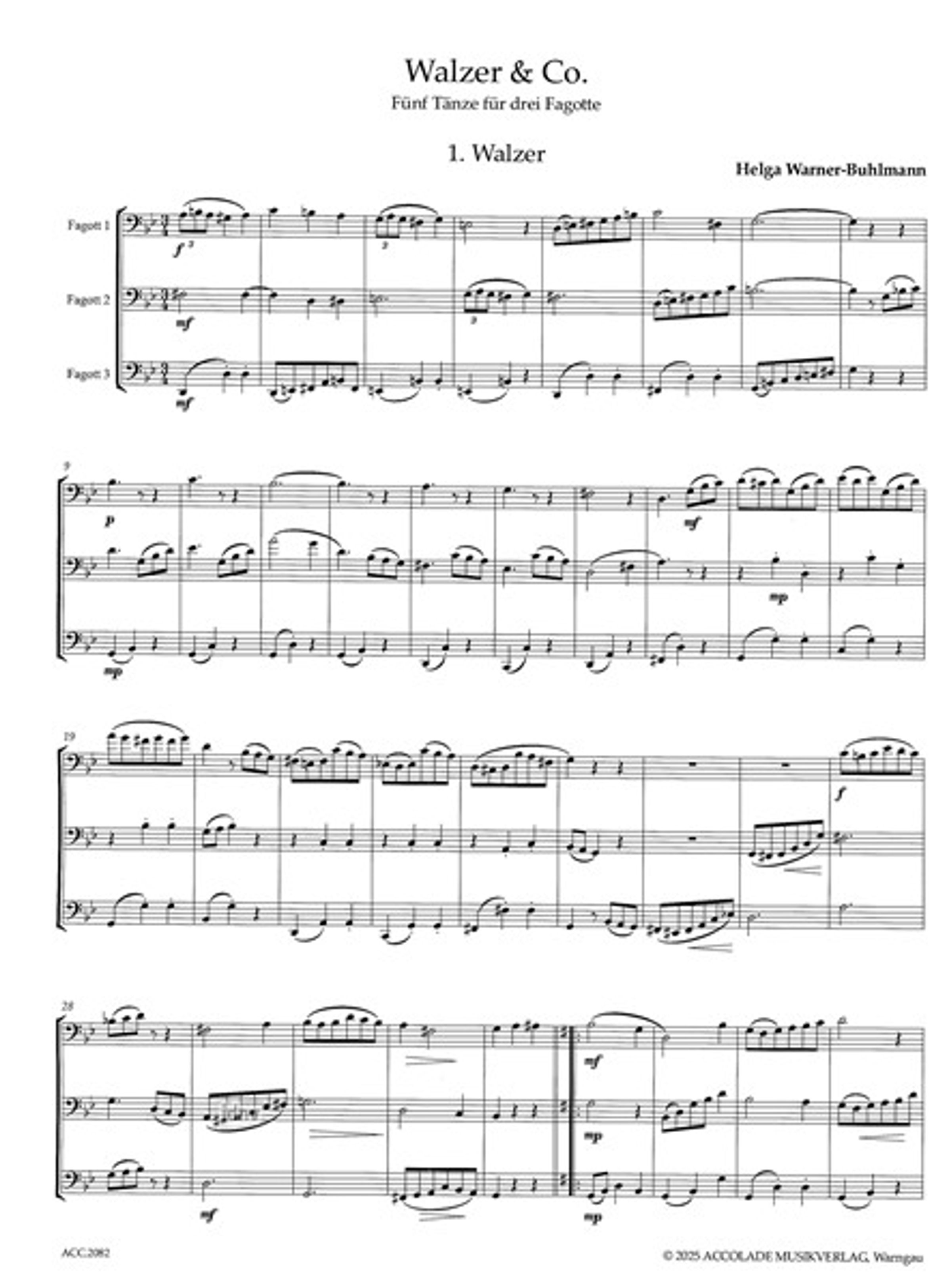 Helga Warner-Buhlmann: Walzer & Co. Fünf Tänze für drei Fagotte (2024)