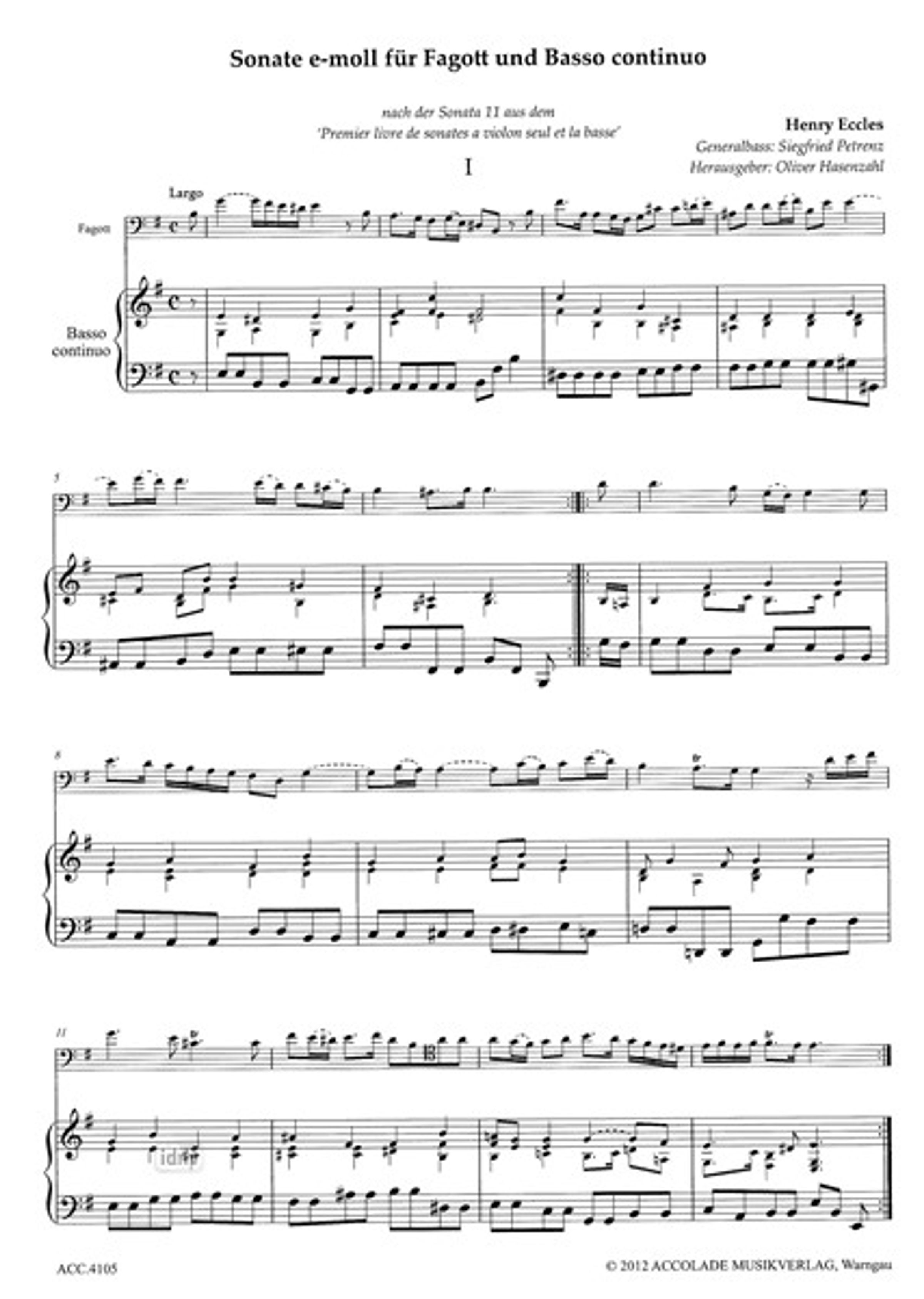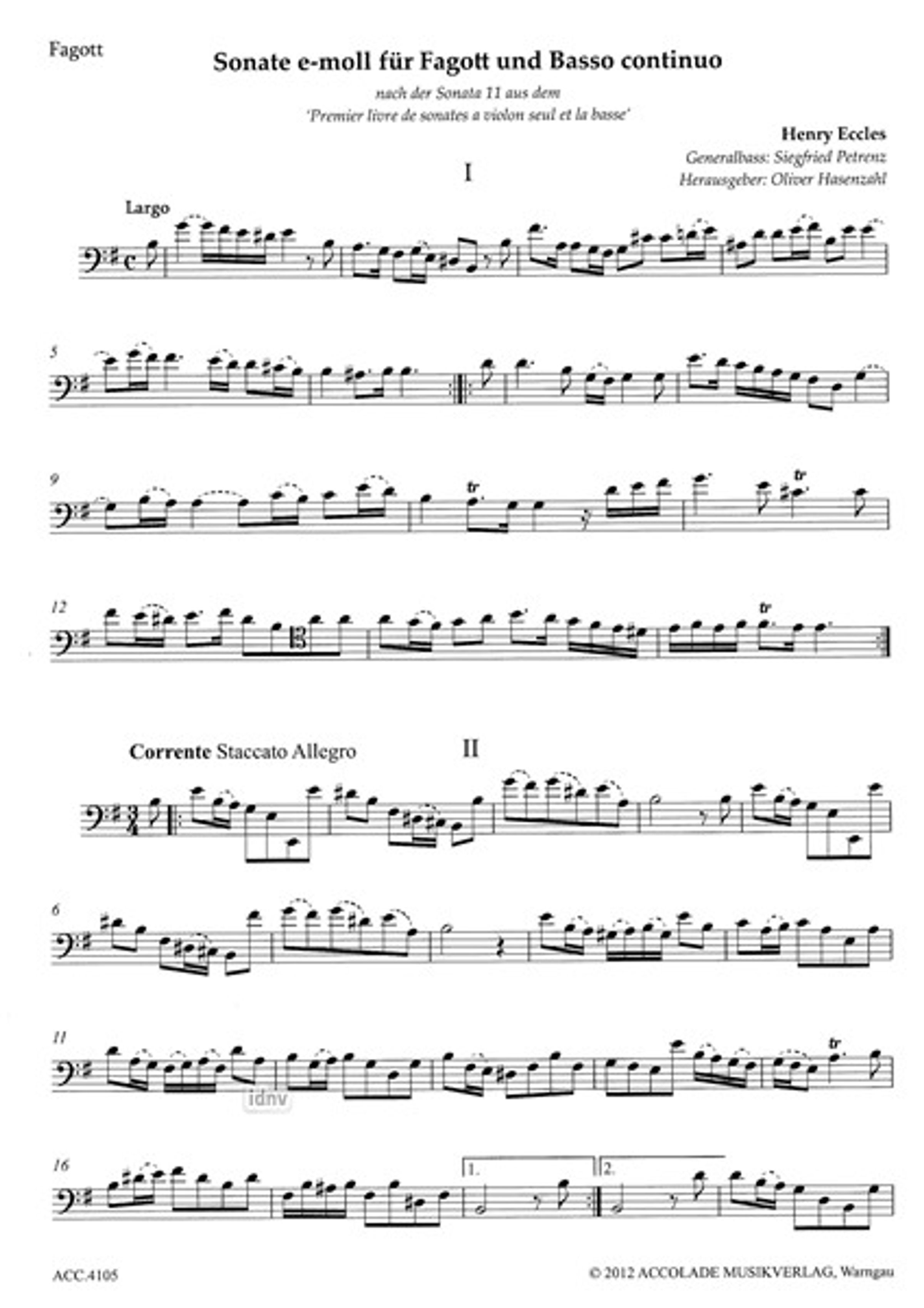 Henry Eccles: Sonate e-Moll, Noten, Noten